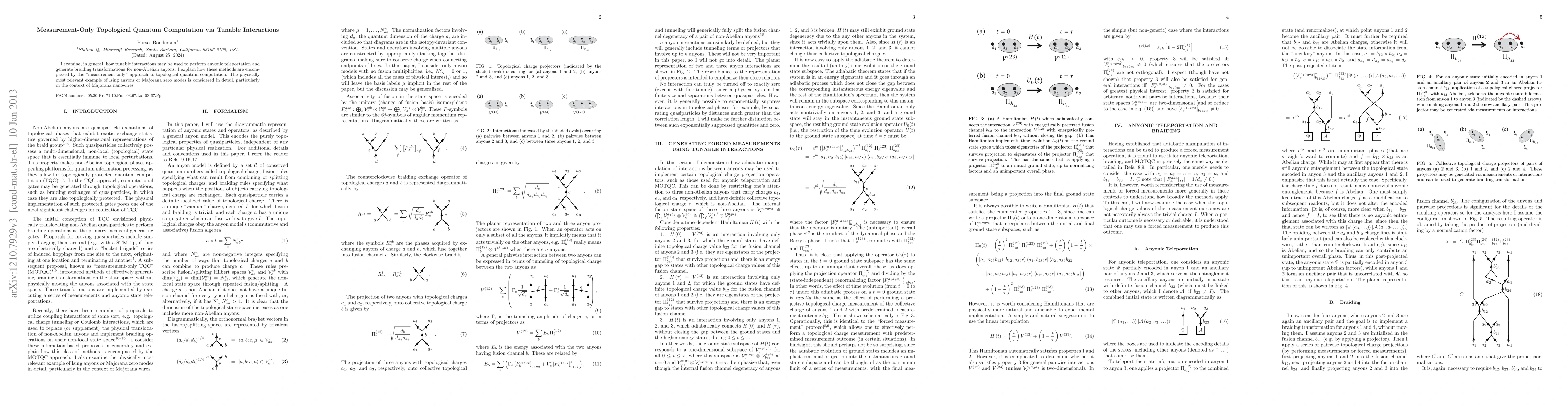 I examine, in general, how tunable interactions may be used to perform anyonic teleportation and generate braiding transformations for non-Abelian anyons. I explain how these methods are encompassed by the "measurement-only" approach to topological quantum computation. The physically most relevant example of Ising anyons or Majorana zero-modes is considered in detail, particularly in the context of Majorana nanowires.
