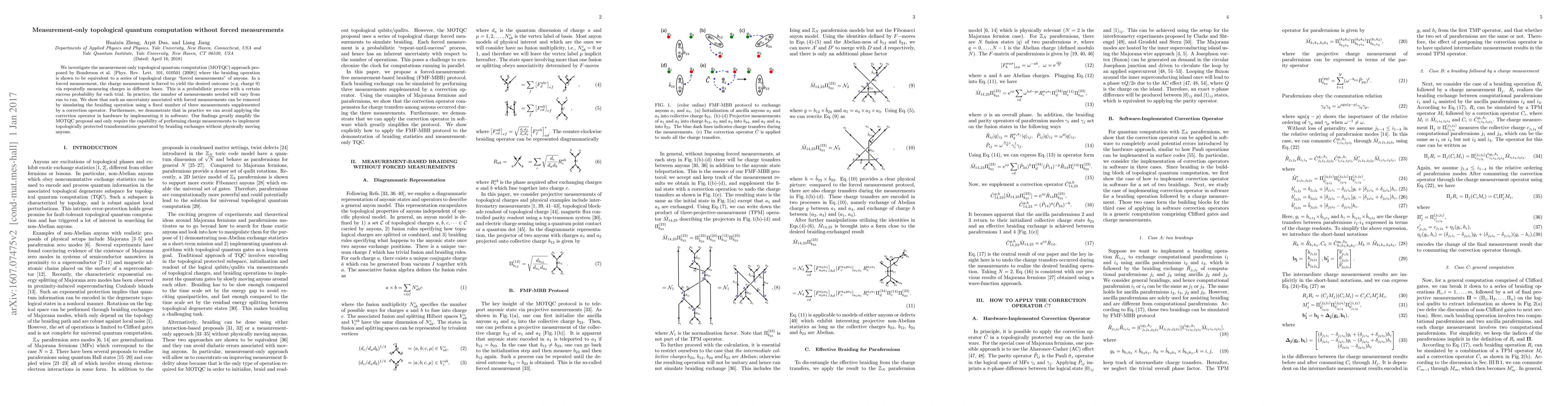 This paper explores a simplified version of measurement-only topological quantum computation (MOTQC) that eliminates the need for forced measurements, relying instead on a fixed number of three measurements and a software-implemented correction operator. This approach maintains the benefits of topological protection without the uncertainty and variability associated with forced measurements.