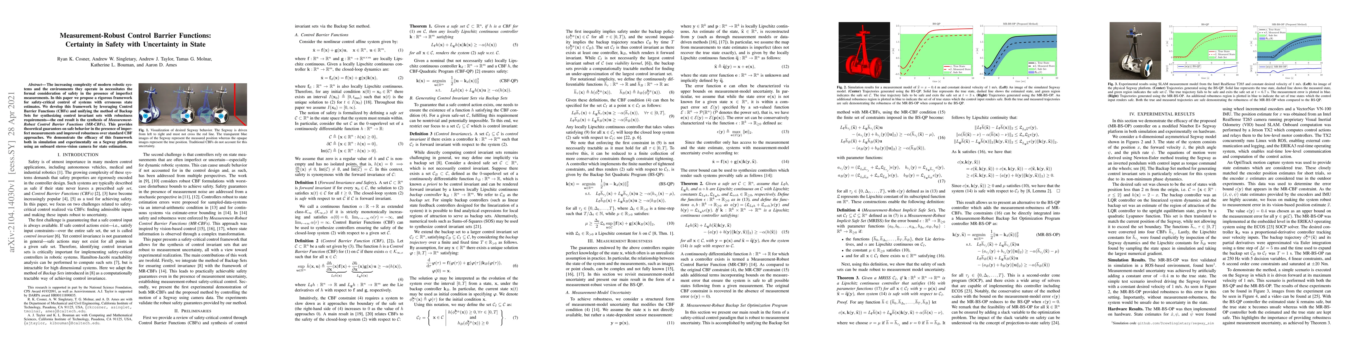 This paper proposes a framework for safety-critical control of robotic systems using Measurement-Robust Control Barrier Functions (MR-CBFs) to ensure safe behavior despite imperfect state estimates. The approach combines Control Barrier Functions with Backup Sets to enhance robustness, demonstrated effectively in simulations and on a Segway platform.