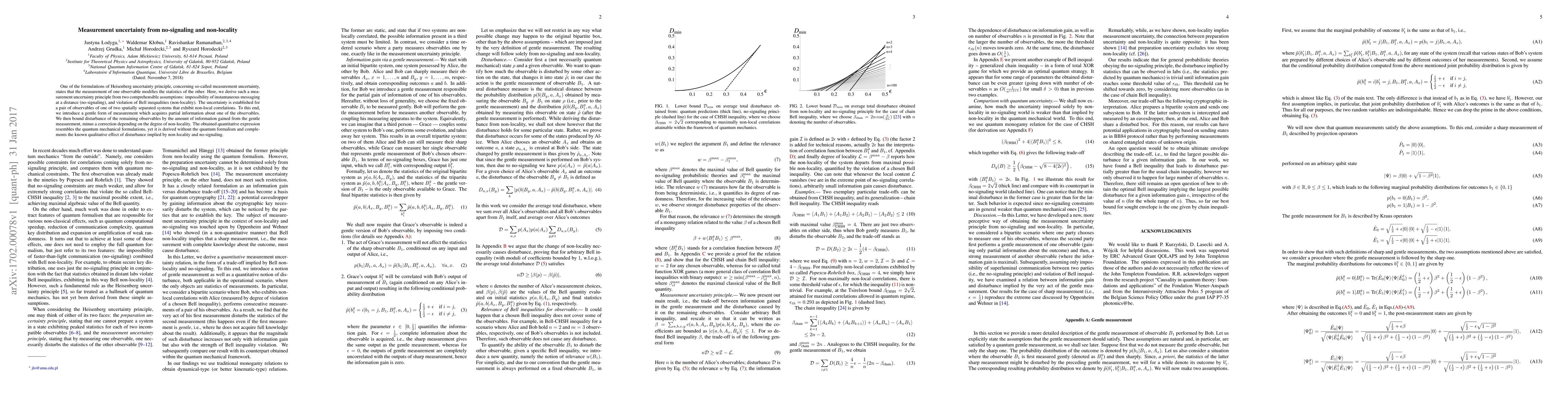 This paper derives a measurement uncertainty principle from no-signaling and non-locality, establishing that the measurement of one observable alters the statistics of another. It introduces a gentle measurement approach to quantify this disturbance, providing a non-quantum derivation that complements existing quantum mechanical formulations.