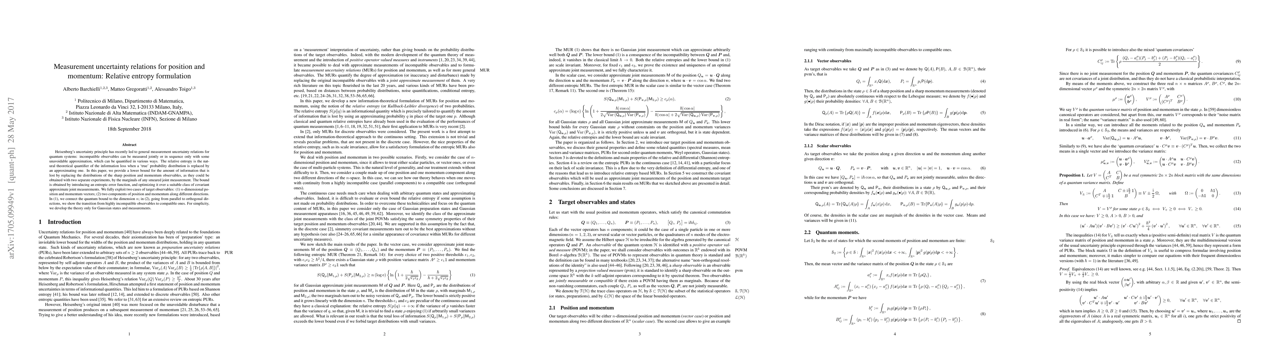 This paper establishes a lower bound on information loss quantified by relative entropy when replacing sharp position and momentum distributions with joint measurements, introducing an entropic error function. The study focuses on Gaussian states and measurements, comparing $n$-dimensional position and momentum vectors and two components along different directions.