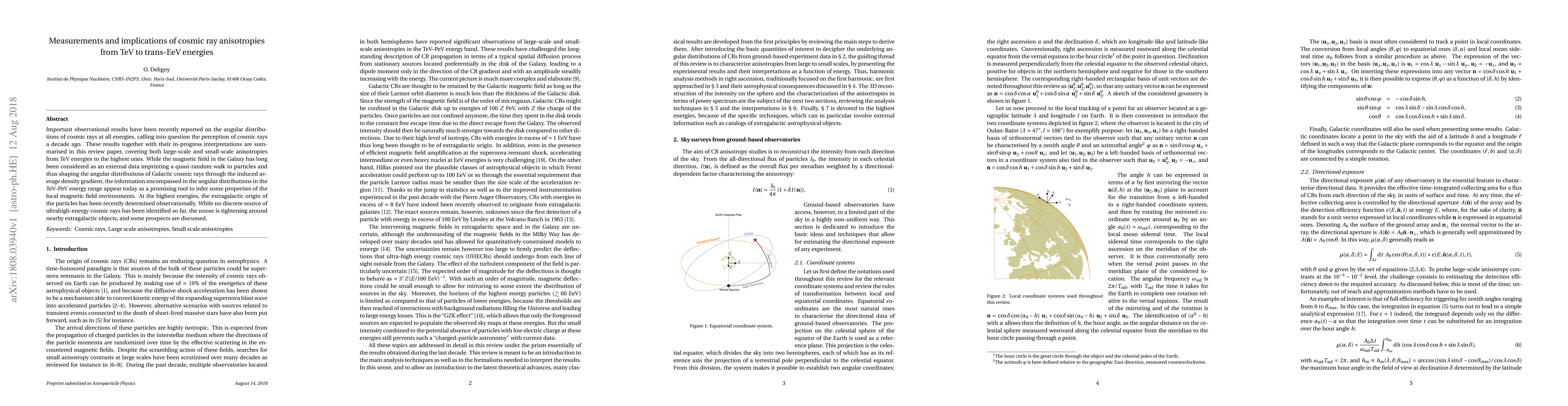 This paper reviews recent findings on cosmic ray anisotropies from TeV to trans-EeV energies, highlighting significant shifts in understanding their angular distributions and implications for both Galactic and extragalactic magnetic fields. It also discusses the ongoing search for sources of ultrahigh-energy cosmic rays.
