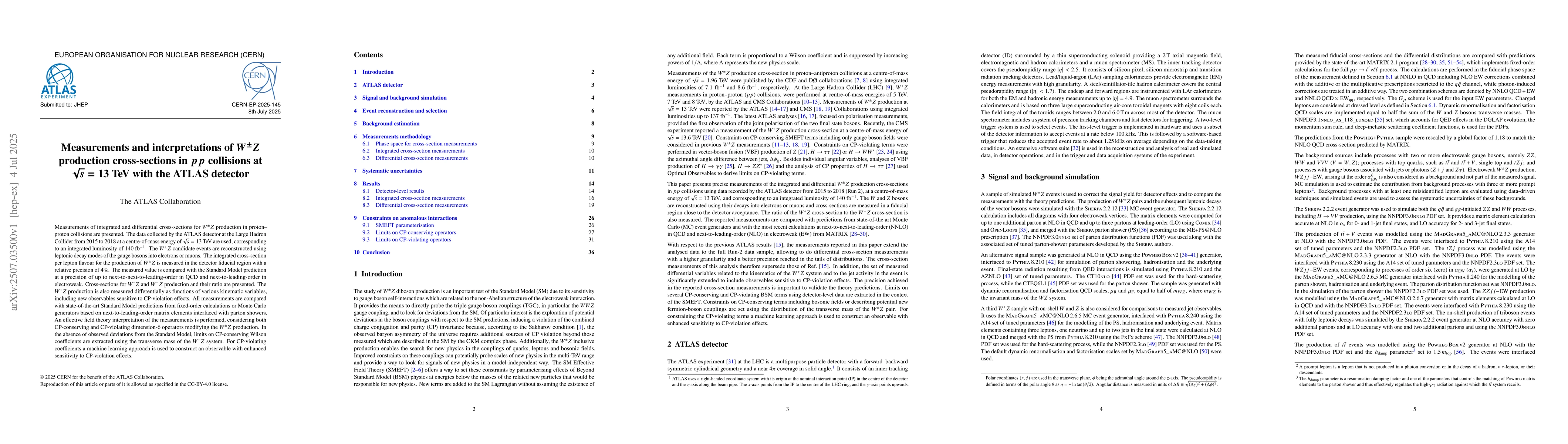 Measurements of integrated and differential cross-sections for $W^{\pm}Z$ production in proton-proton collisions are presented. The data collected by the ATLAS detector at the Large Hadron Collider from 2015 to 2018 at a centre-of-mass energy of $\sqrt{s} =$ 13 TeV are used, corresponding to an integrated luminosity of 140 fb$^{-1}$. The $W^{\pm}Z$ candidate events are reconstructed using leptonic decay modes of the gauge bosons into electrons or muons. The integrated cross-section per lepton flavour for the production of $W^{\pm}Z$ is measured in the detector fiducial region with a relative precision of 4%. The measured value is compared with the Standard Model prediction at a precision of up to next-to-next-to-leading-order in QCD and next-to-leading-order in electroweak. Cross-sections for $W^+Z$ and $W^-Z$ production and their ratio are presented. The $W^{\pm}Z$ production is also measured differentially as functions of various kinematic variables, including new observables sensitive to CP-violation effects. All measurements are compared with state-of-the-art Standard Model predictions from fixed-order calculations or Monte Carlo generators based on next-to-leading-order matrix elements interfaced with parton showers. An effective field theory interpretation of the measurements is performed, considering both CP-conserving and CP-violating dimension-6 operators modifying the $W^{\pm}Z$ production. In the absence of observed deviations from the Standard Model, limits on CP-conserving Wilson coefficients are extracted using the transverse mass of the $W^{\pm}Z$ system. For CP-violating coefficients a machine learning approach is used to construct an observable with enhanced sensitivity to CP-violation effects.