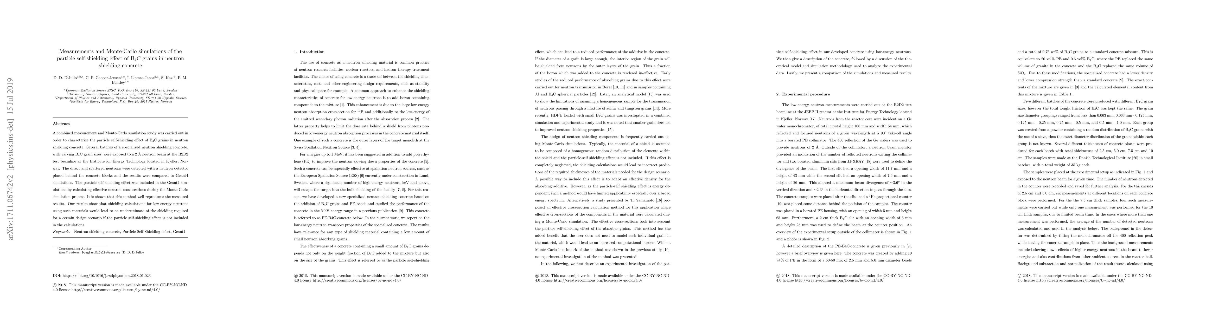 A combined measurement and Monte-Carlo simulation study was carried out in order to characterize the particle self-shielding effect of B4C grains in neutron shielding concrete. Several batches of a specialized neutron shielding concrete, with varying B4C grain sizes, were exposed to a 2 {\AA} neutron beam at the R2D2 test beamline at the Institute for Energy Technology located in Kjeller, Norway. The direct and scattered neutrons were detected with a neutron detector placed behind the concrete blocks and the results were compared to Geant4 simulations. The particle self-shielding effect was included in the Geant4 simulations by calculating effective neutron cross-sections during the Monte-Carlo simulation process. It is shown that this method well reproduces the measured results. Our results show that shielding calculations for low-energy neutrons using such materials would lead to an underestimate of the shielding required for a certain design scenario if the particle self-shielding effect is not included in the calculations.