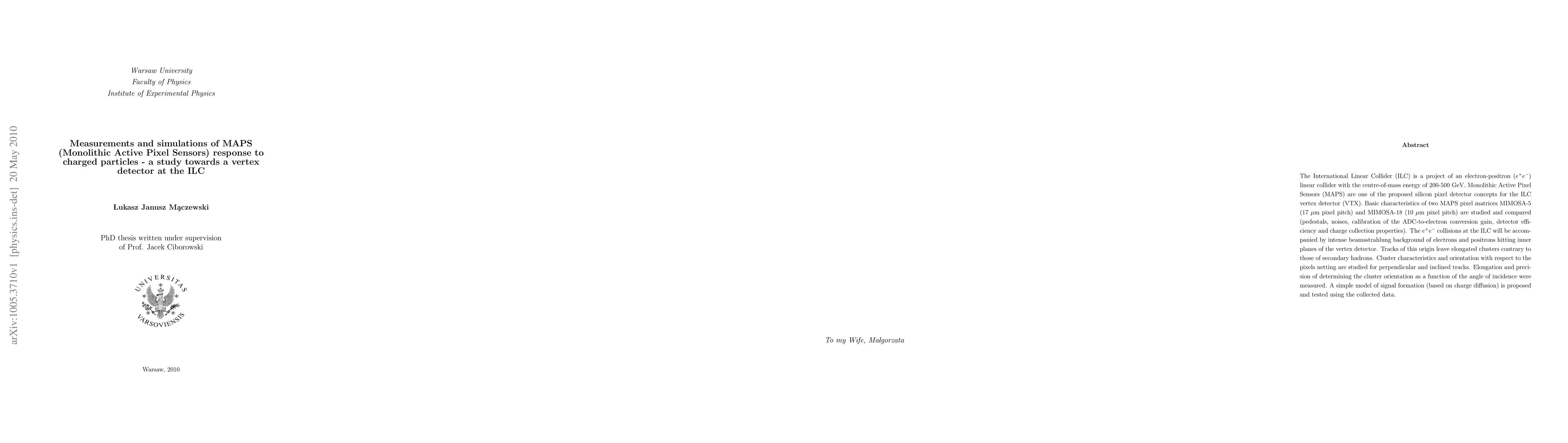 This paper investigates the performance of Monolithic Active Pixel Sensors (MAPS) for the International Linear Collider's vertex detector, focusing on two MAPS matrices, MIMOSA-5 and MIMOSA-18. It compares their basic characteristics and measures their response to charged particles, including the effects of beamstrahlung background, to determine cluster orientation and precision.