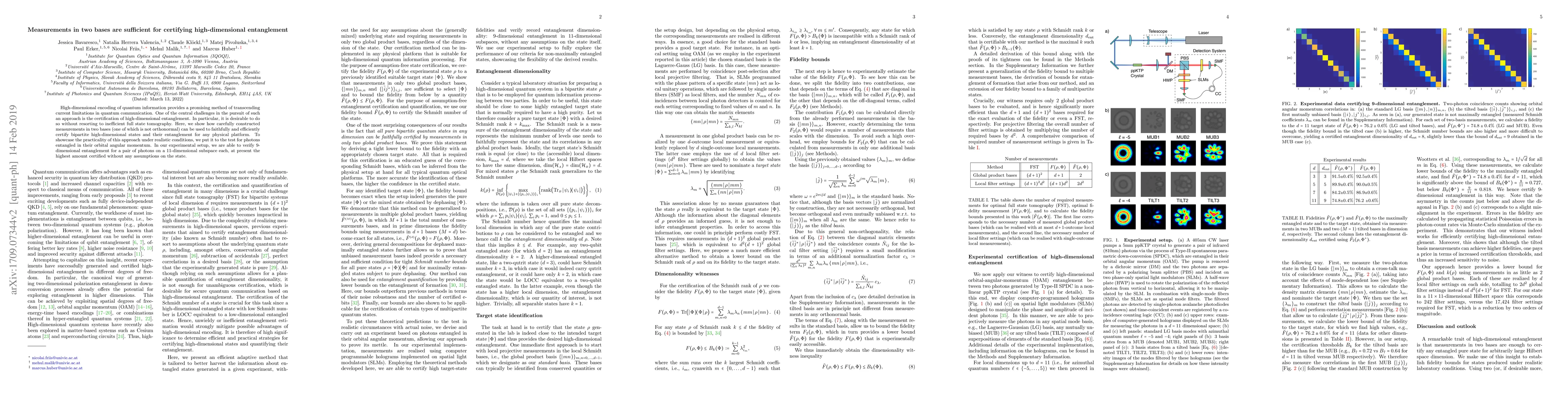 Researchers demonstrate a method to efficiently certify high-dimensional entanglement using measurements in two bases, achieving 9-dimensional entanglement without full state tomography on photons.
