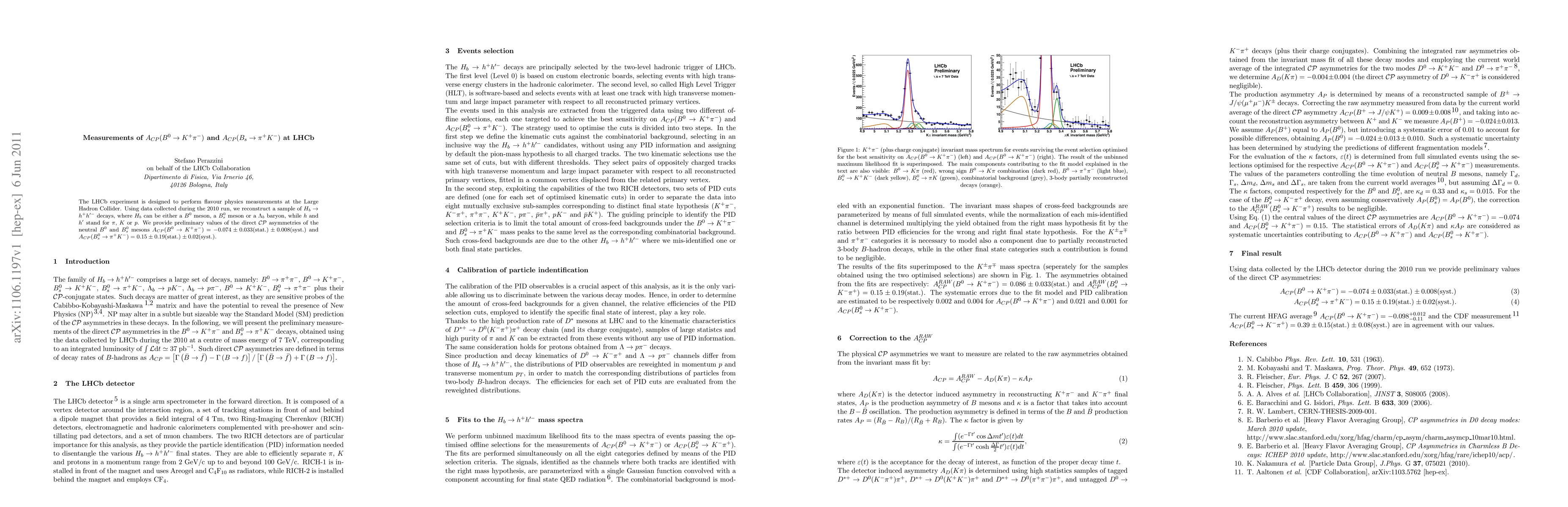 The LHCb experiment is designed to perform flavour physics measurements at the Large Hadron Collider. Using data collected during the 2010 run, we reconstruct a sample of $H_b\rightarrow h^+h'^-$ decays, where $H_b$ can be either a $B^0$ meson, a $B_s^0$ meson or a $\Lambda_b$ baryon, while $h$ and $h^\prime$ stand for $\pi$, $K$ or $p$. We provide preliminary values of the direct $\mathcal{CP}$ asymmetries of the neutral $B^0$ and $B_s^0$ mesons $A_{CP} (B^0\rightarrow K^+\pi^-) = -0.074 \pm 0.033\mathrm{(stat.)} \pm 0.008\mathrm{(syst.)}$ and $A_{CP}(B_s^0\rightarrow\pi^+K^-)=0.15 \pm 0.19\mathrm{(stat.)} \pm 0.02\mathrm{(syst.)}$.