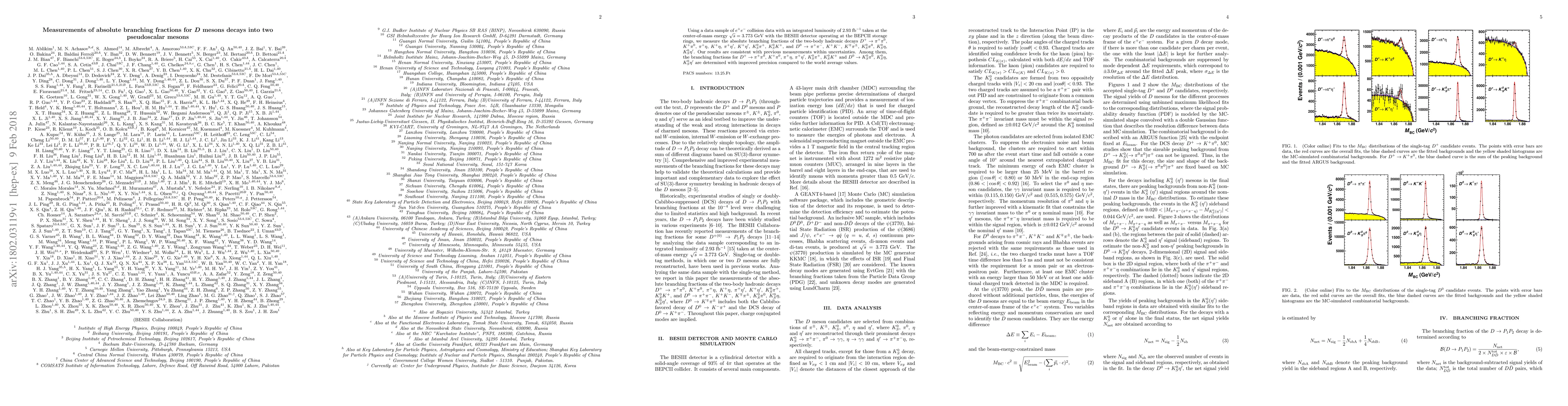 This study measures the absolute branching fractions for various two-body hadronic decays of $D$ mesons using data from $e^+e^-$ collisions at BESIII. The results show improved precision for several decay modes compared to previous measurements.
