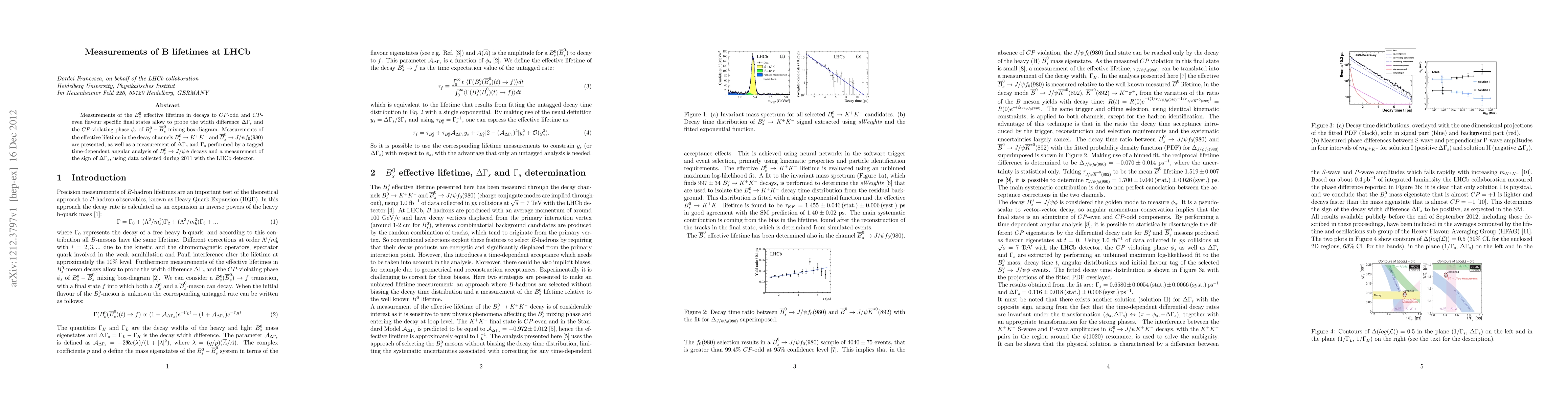 Measurements of the $B_s^0$ effective lifetime in decays to CP-odd and CP-even flavour specific final states allow to probe the width difference $\Delta \Gamma_s$ and the CP-violating phase $\phi_s$ of $B^0_s-\bar{B}^0_s$ mixing box-diagram. Measurements of the effective lifetime in the decay channels $B_s^0 \rightarrow K^+ K^-$ and $\bar{B}_s^0 \rightarrow J/\psi f_0(980)$ are presented, as well as a measurement of $\Delta \Gamma_s$ and $\Gamma_s$ performed by a tagged time-dependent angular analysis of $B_s^0 \rightarrow J/\psi \phi$ decays and a measurement of the sign of $\Delta \Gamma_s$, using data collected during 2011 with the LHCb detector.