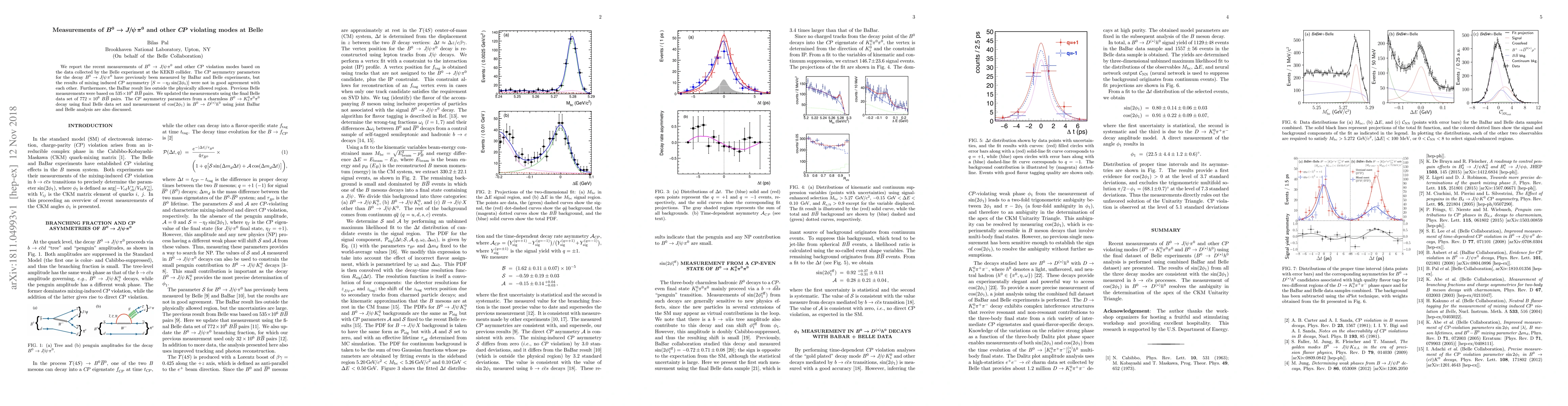 The Belle experiment has updated its measurements of CP violation in $B^0\to J/\psi\pi^0$ and other modes using $772\times10^6$ $B\bar{B}$ pairs, resolving discrepancies between previous Belle and BaBar results. Additionally, the study includes new findings on charmless $B^0\to K_S^0\pi^0\pi^0$ decay and $\cos(2\phi_1)$ in $B^0\to D^{(*)}h^0$.