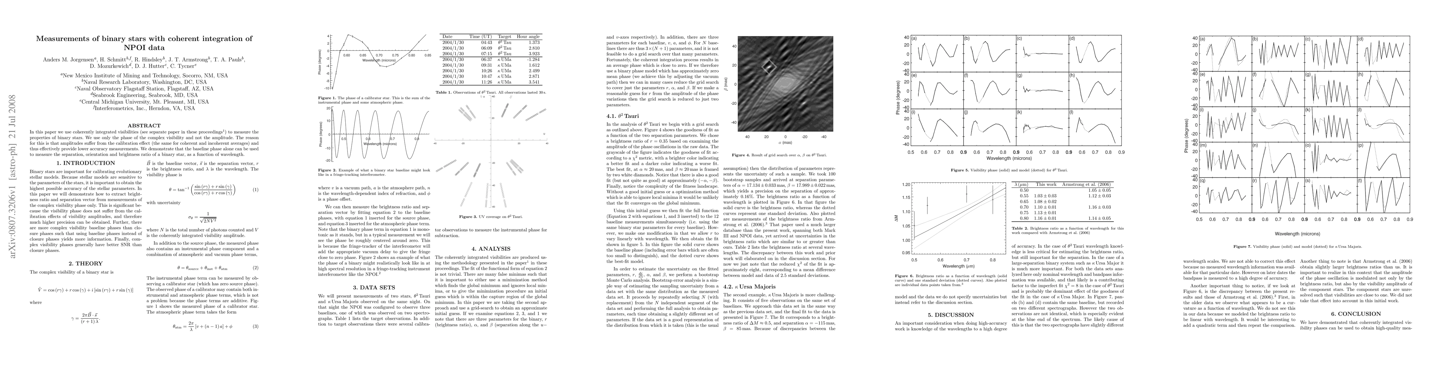 In this paper we use coherently integrated visibilities (see separate paper in these proceedings, Jorgensen et al. 2008) to measure the properties of binary stars. We use only the phase of the complex visibility and not the amplitude. The reason for this is that amplitudes suffer from the calibration effect (the same for coherent and incoherent averages) and thus effectively provide lower accuracy measurements. We demonstrate that the baseline phase alone can be used to measure the separation, orientation and brightness ratio of a binary star, as a function of wavelength.