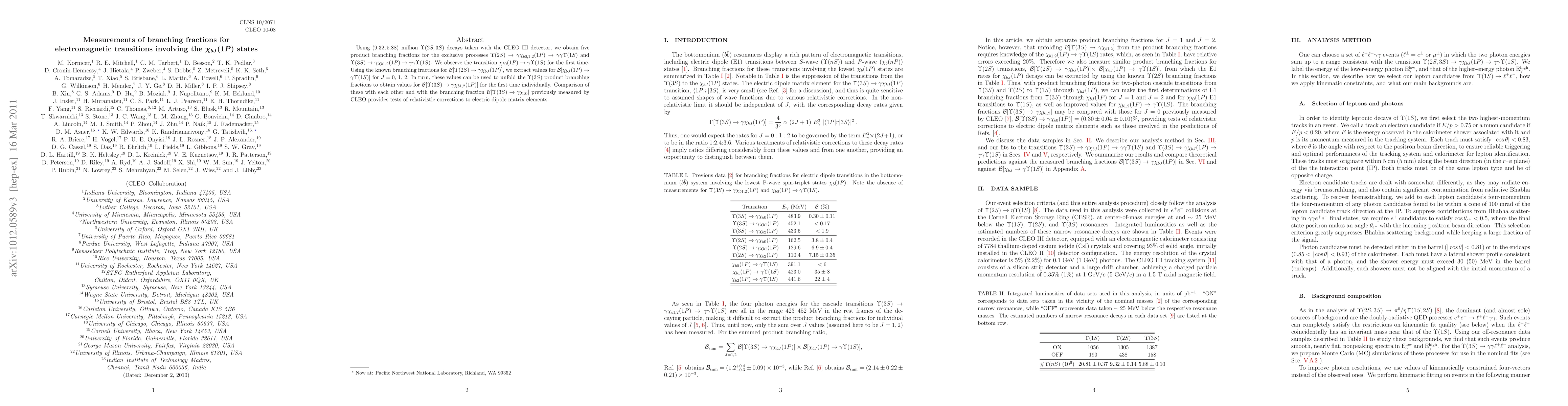 Using 9.32, 5.88 million Upsilon(2S,3S) decays taken with the CLEO-III detector, we obtain five product branching fractions for the exclusive processes Upsilon(2S) => gamma chi_{b0,1,2}(1P) => gamma gamma Upsilon(1S) and Upsilon(3S) => gamma chi_{b1,2}(1P) => gamma gamma Upsilon(1S). We observe the transition chi_{b0}(1P) => gamma Upsilon(1S) for the first time. Using the known branching fractions for B[Upsilon(2S) => gamma chi_{bJ}(1P)], we extract values for B[chi_{bJ}(1P) => gamma Upsilon(1S)] for J=0, 1, 2. In turn, these values can be used to unfold the Upsilon(3S) product branching fractions to obtain values for B[Upsilon(3S) => gamma chi_{b1,2}(1P) for the first time individually. Comparison of these with each other and with the branching fraction B[Upsilon(3S) => gamma chi_{b0}] previously measured by CLEO provides tests of relativistic corrections to electric dipole matrix elements.
