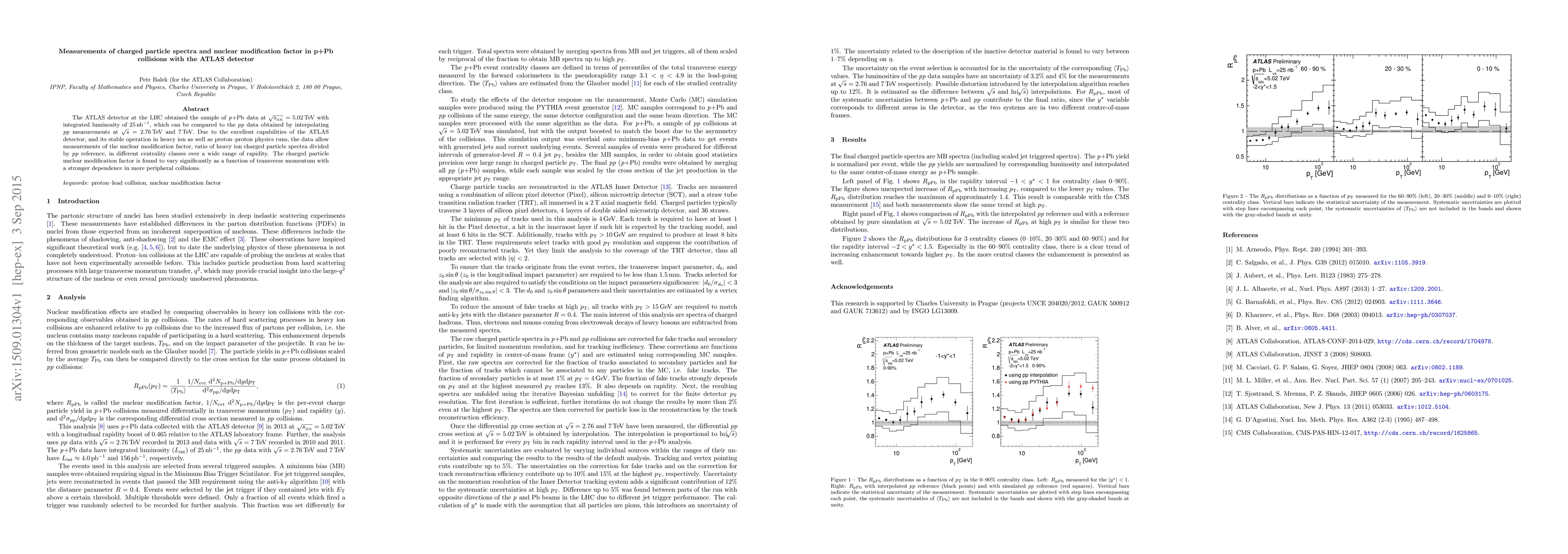 The ATLAS detector at the LHC measured charged particle spectra and the nuclear modification factor in p+Pb collisions at $\sqrt{s_{NN}} = 5.02$ TeV, revealing significant variations in the nuclear modification factor with transverse momentum, especially in peripheral collisions.
