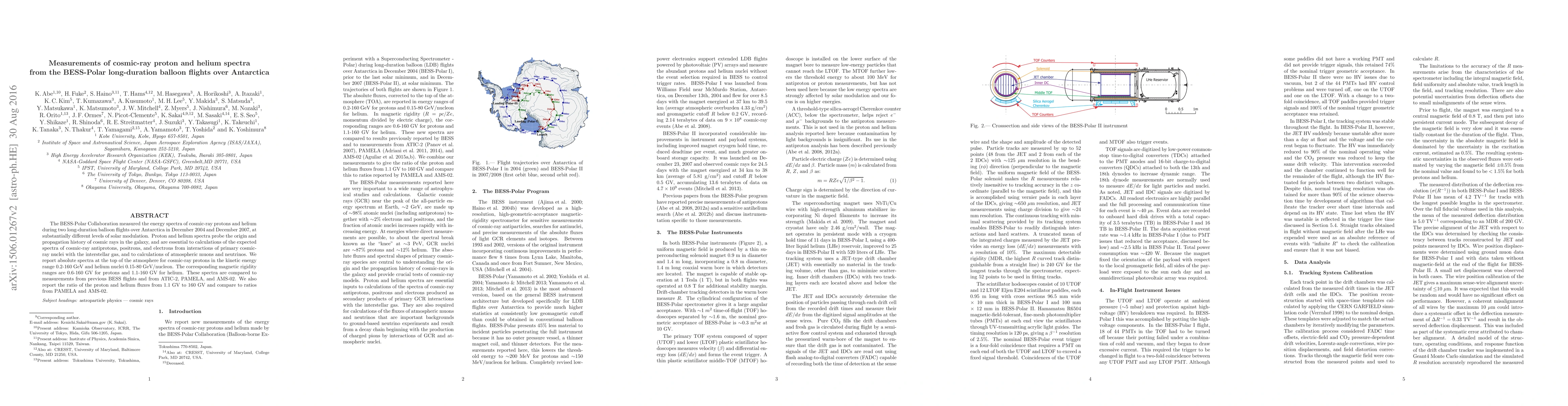 The BESS-Polar Collaboration measured cosmic-ray proton and helium spectra during long-duration balloon flights in 2004 and 2007, revealing significant differences in solar modulation. The study provides essential data for understanding cosmic-ray origins and propagation, and compares these findings with previous BESS, ATIC-2, PAMELA, and AMS-02 measurements.