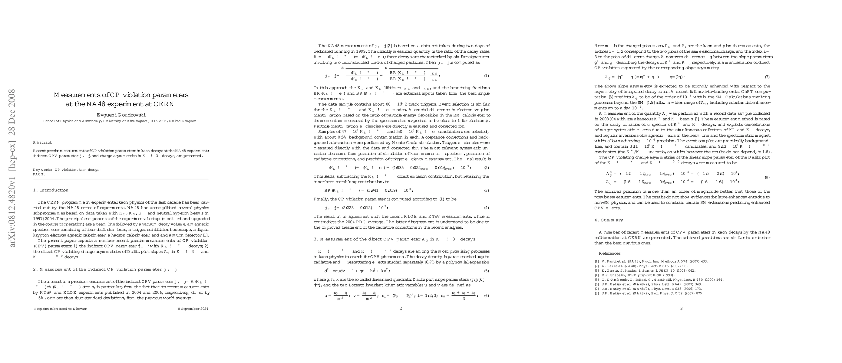 Summary: The NA48 experiment at CERN reports precise measurements of CP violation parameters in kaon decays, including the indirect CP violation parameter $|\eta_{+-}|$ and charge asymmetries in $K^\pm\to3\pi$ decays. These findings enhance the understanding of CP violation in weak interactions.