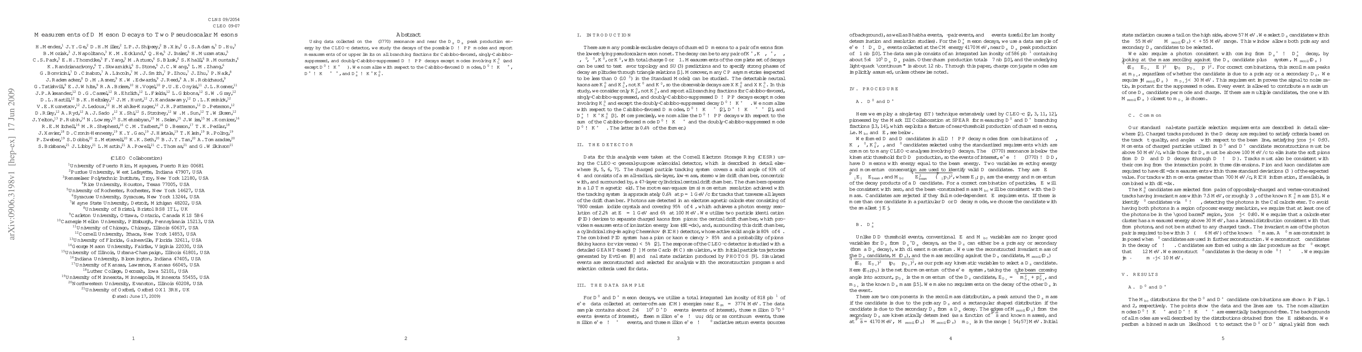 Researchers measured decay rates of D mesons into pseudoscalar meson pairs, finding branching fractions for most Cabibbo-favored modes except those involving K0L.
