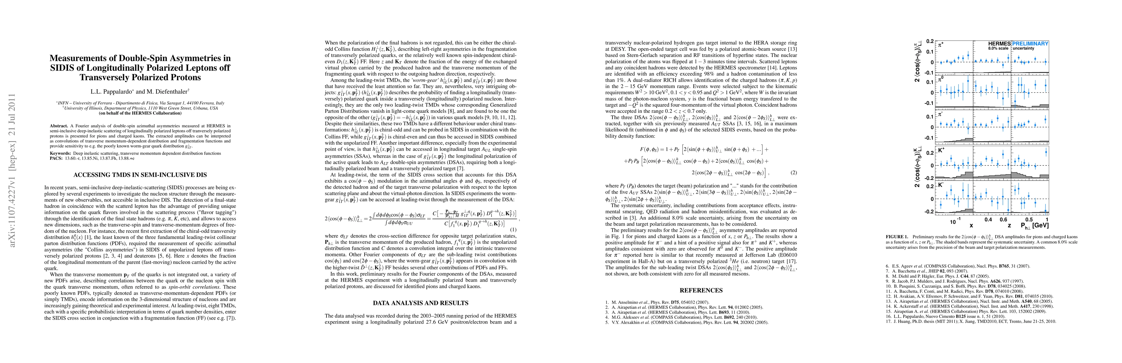 A Fourier analysis of double-spin azimuthal asymmetries measured at HERMES in semi-inclusive deep-inelastic scattering of longitudinally polarized leptons off tranversely polarized protons is presented for pions and charged kaons. The extracted amplitudes can be interpreted as convolutions of transverse momentum-dependent distribution and fragmentation functions and provide sensitivity to, e.g., the poorly known worm-gear quark distribution.