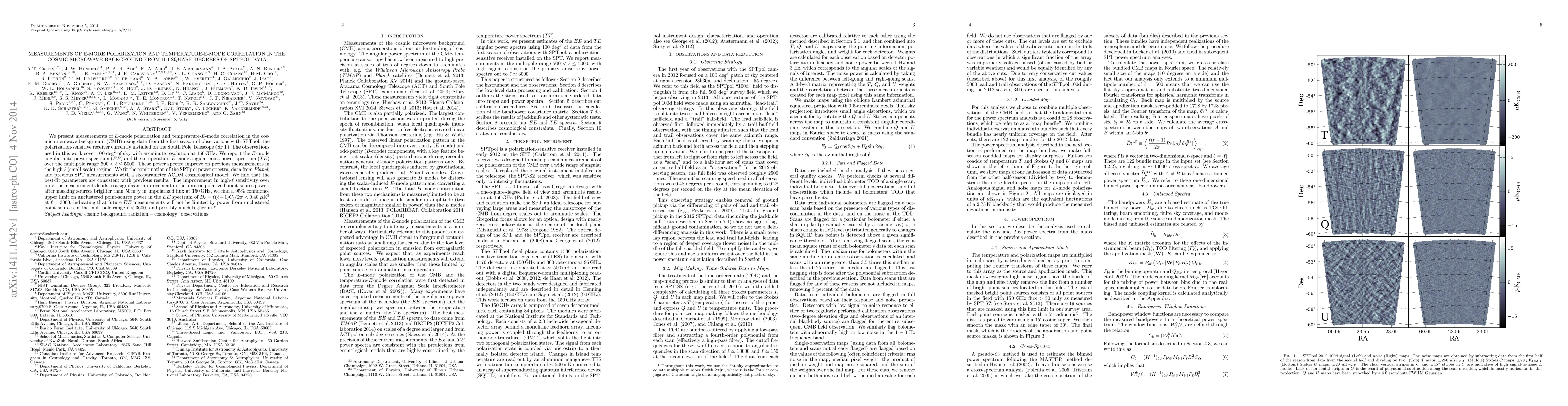 This paper reports measurements of $E$-mode polarization and temperature-$E$-mode correlation in the CMB using SPTpol data, improving high-$\ell$ sensitivity. The results are consistent with previous cosmological models, and the study sets a new upper limit on unclustered point-source power in the $EE$ spectrum, indicating future $EE$ measurements will not be significantly limited by such sources.
