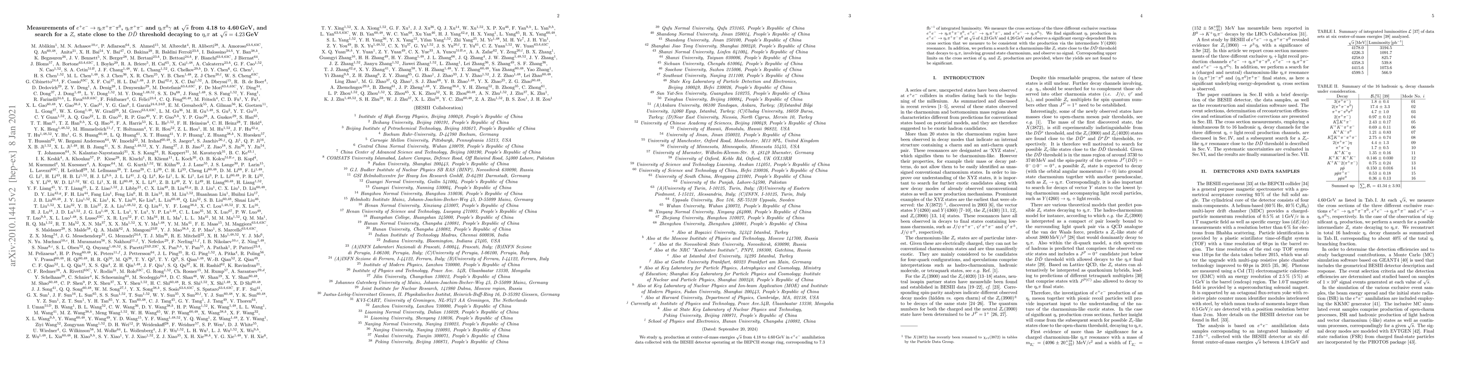 This paper reports measurements of $\eta_{\rm c}$ production in various $e^+e^-$ annihilation reactions at energies from 4.18 to 4.60 GeV, finding significant production in $e^+e^-\rightarrow \eta_{\rm c}\pi^+ \pi^-\pi^0$ at 4.23 and 4.26 GeV, while no evidence of a $Z_{\rm c}$ state decaying to $\eta_{\rm c}\pi$ is observed.