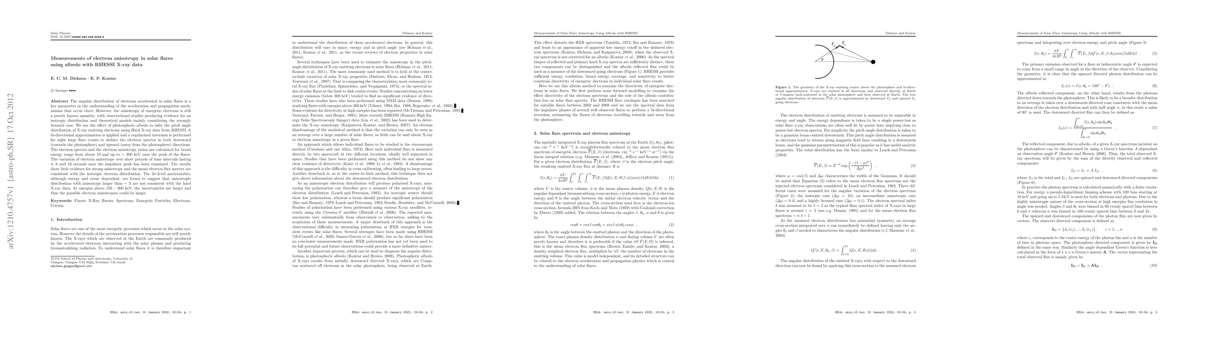 This study uses RHESSI X-ray data and photospheric albedo to infer the pitch angle distribution of electrons in solar flares, revealing little evidence for strong anisotropy and consistent mean electron flux spectra with an isotropic distribution. The uncertainties suggest that significant anisotropy is unlikely below ~3, though higher energies may allow for larger anisotropies.