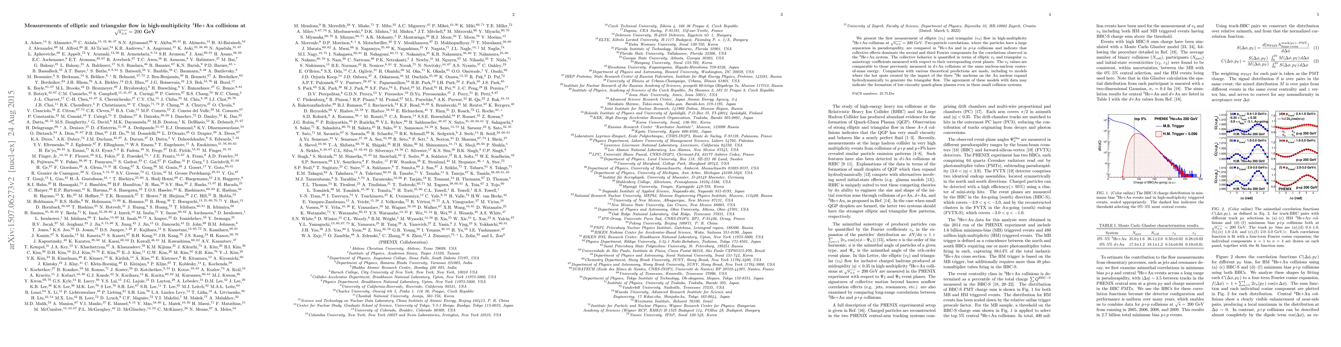 This paper reports the first measurements of elliptic ($v_2$) and triangular ($v_3$) flow in high-multiplicity $^{3}$He$+$Au collisions at $\sqrt{s_{_{NN}}}=200$ GeV, indicating dominant collective effects and suggesting the formation of low-viscosity quark-gluon plasma. Comparisons with $p$$+$$p$ collisions and theoretical models support these findings.