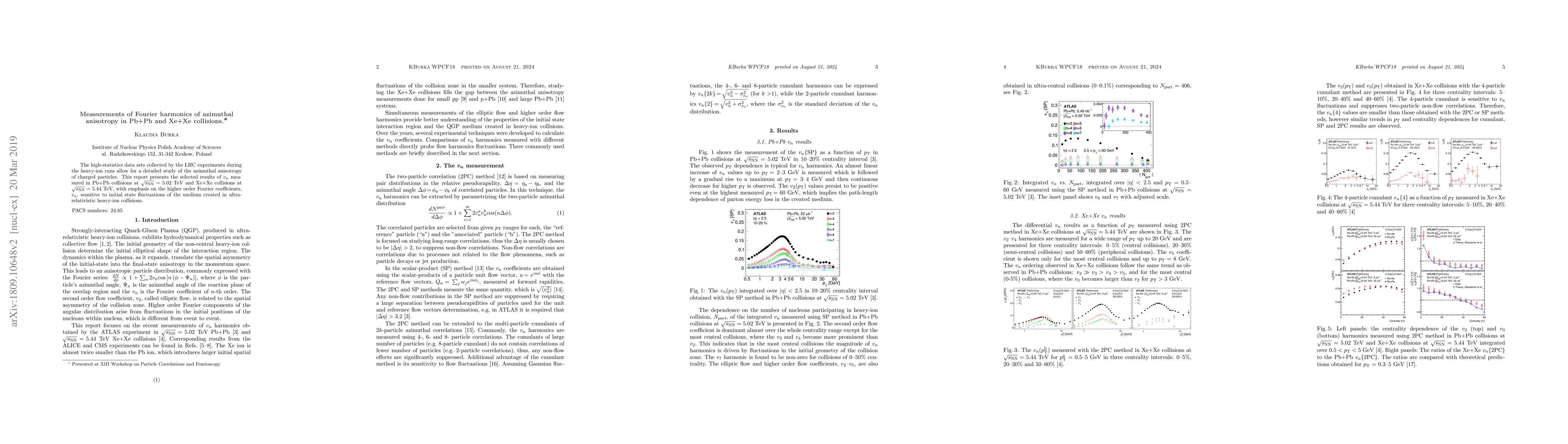 Researchers measured Fourier harmonics of azimuthal anisotropy in Pb+Pb and Xe+Xe collisions, focusing on high-order coefficients sensitive to initial state fluctuations in heavy-ion collisions.