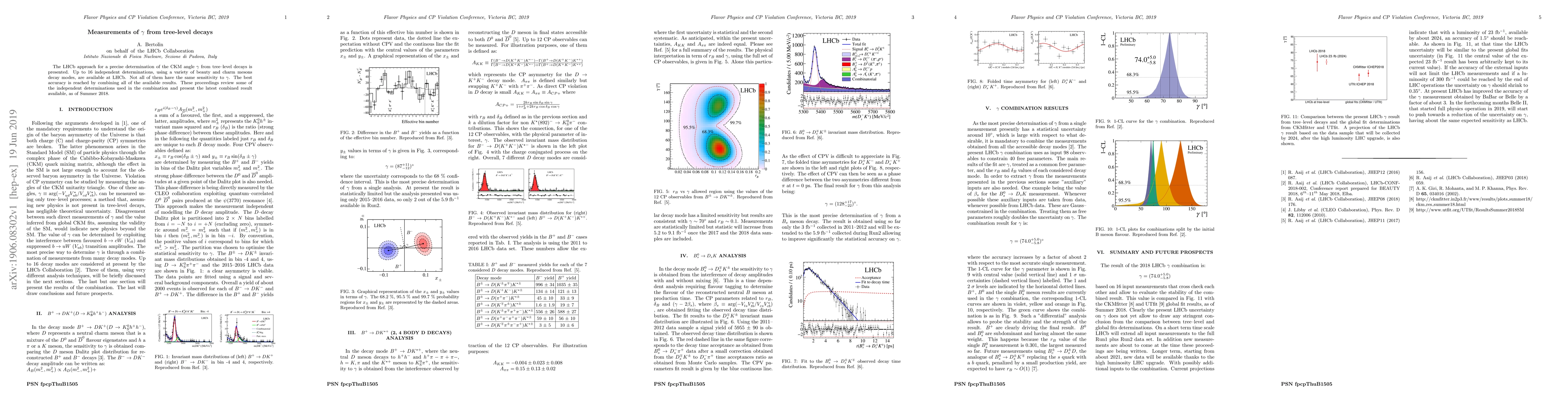 The LHCb experiment presents a method for precisely determining the CKM angle γ from tree-level decays, utilizing up to 16 independent measurements. Combining all results yields the most accurate determination, with the latest result as of Summer 2018.