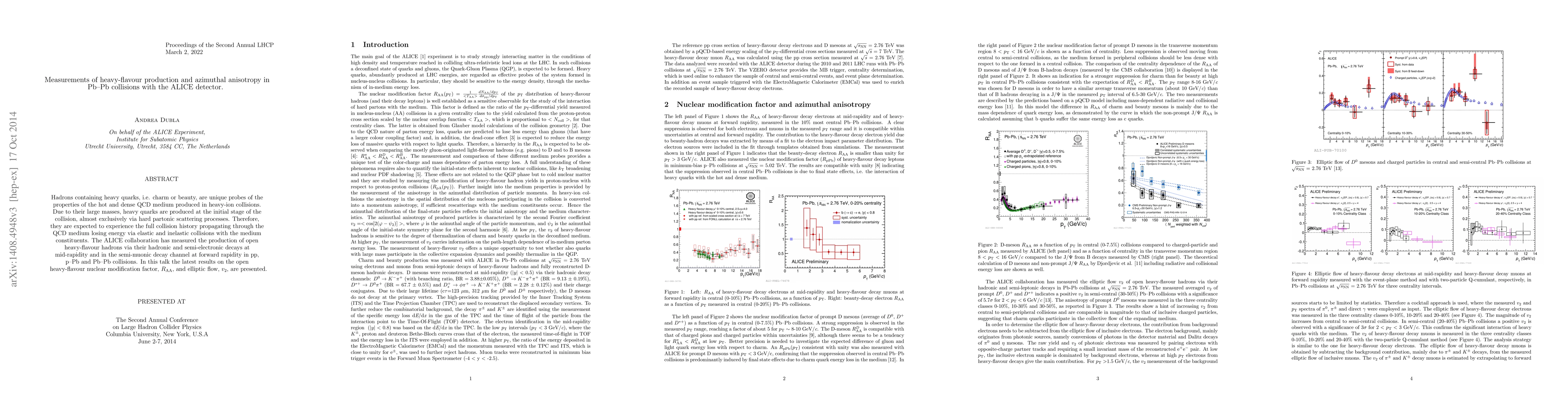 Hadrons containing heavy quarks, i.e. charm or beauty, are unique probes of the properties of the hot and dense QCD medium produced in heavy-ion collisions. Due to their large masses, heavy quarks are produced at the initial stage of the collision, almost exclusively via hard partonic scattering processes. Therefore, they are expected to experience the full collision history propagating through the QCD medium losing energy via elastic and inelastic collisions with the medium constituents. The ALICE collaboration has measured the production of open heavy-flavour hadrons via their hadronic and semi-electronic decays at mid-rapidity and in the semi-muonic decay channel at \mbox{forward rapidity} in pp, p--Pb and Pb--Pb collisions. In this talk the latest results on the open \mbox{heavy-flavour nuclear modification factor, $R_\mathrm{AA}$, and elliptic flow, $v_{2}$, are presented}.
