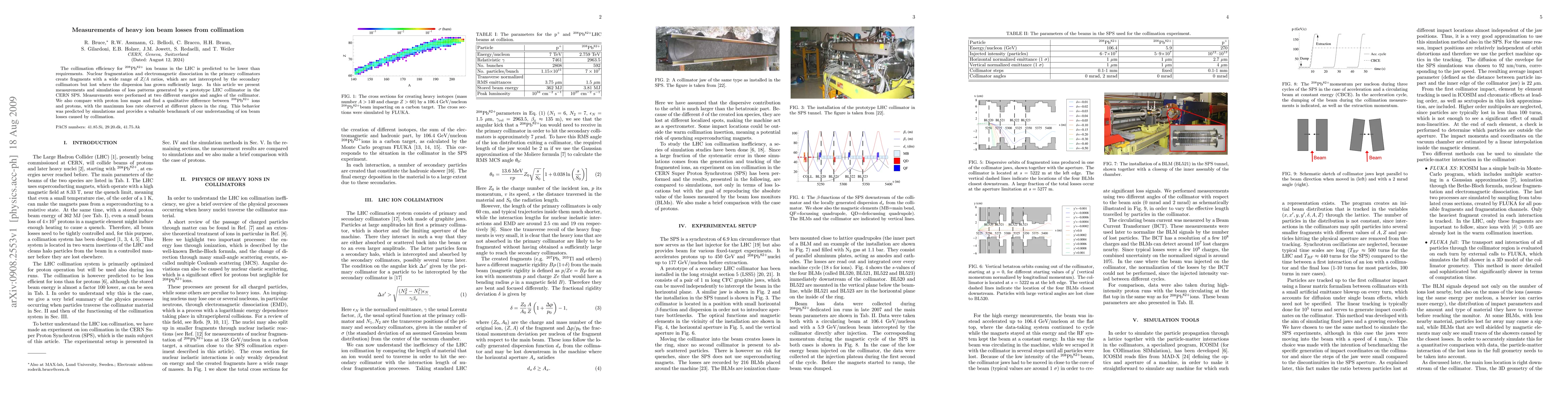 This paper reports on measurements of heavy ion beam losses in the LHC due to collimation, revealing that Pb ions experience greater losses than predicted due to nuclear fragmentation and electromagnetic dissociation. The study compares Pb ion loss patterns with protons, identifying a qualitative difference in loss rates and locations, validated by simulations.