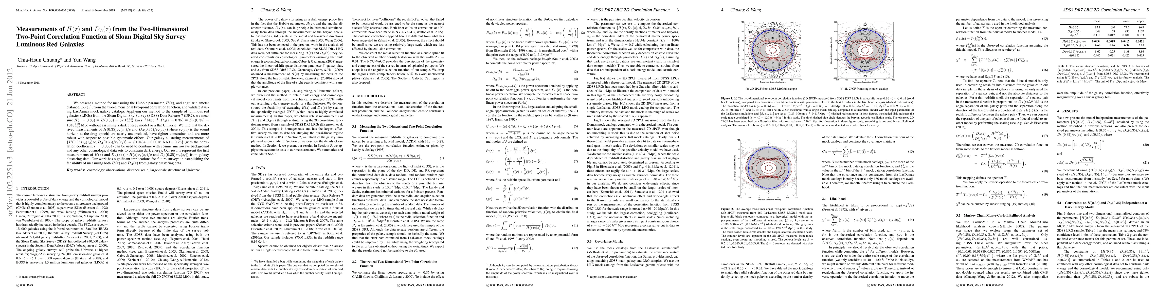 This paper presents a novel method to measure the Hubble parameter H(z) and angular diameter distance D_A(z) using the two-dimensional two-point correlation function of Sloan Digital Sky Survey luminous red galaxies. The method yields robust measurements without assuming dark energy or a flat Universe, with significant implications for future cosmological surveys.