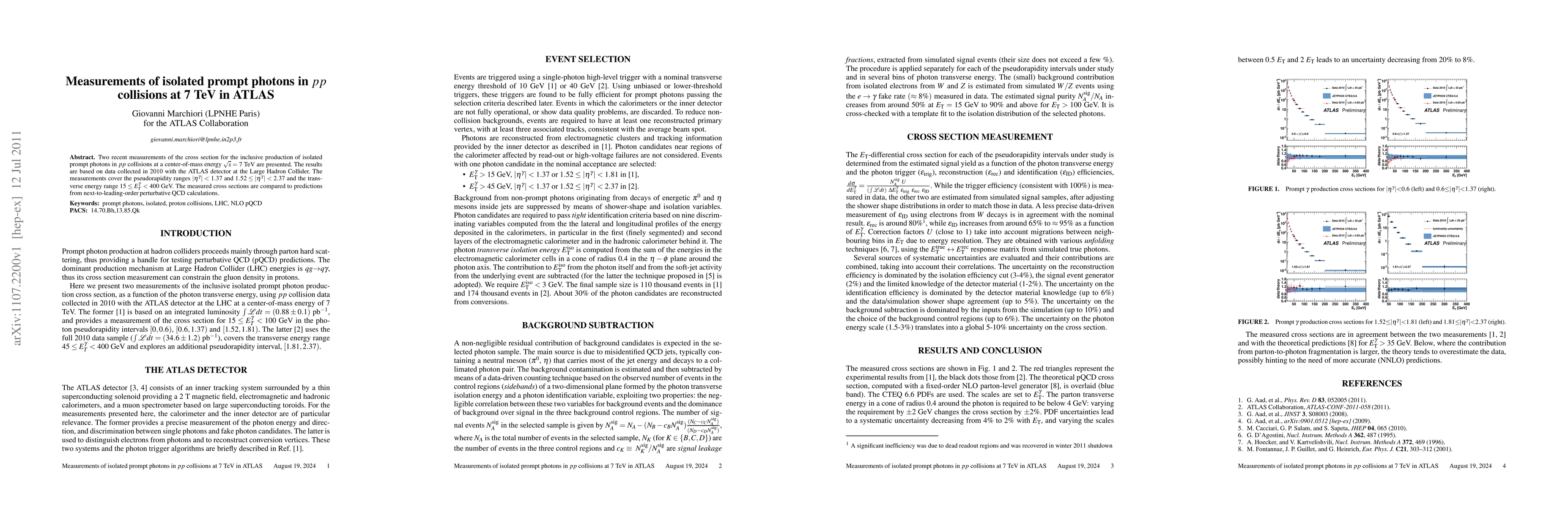 This paper presents two measurements of the inclusive production cross section for isolated prompt photons in proton-proton collisions at 7 TeV, using data from the ATLAS detector at the LHC. The results are compared to next-to-leading-order perturbative QCD predictions.