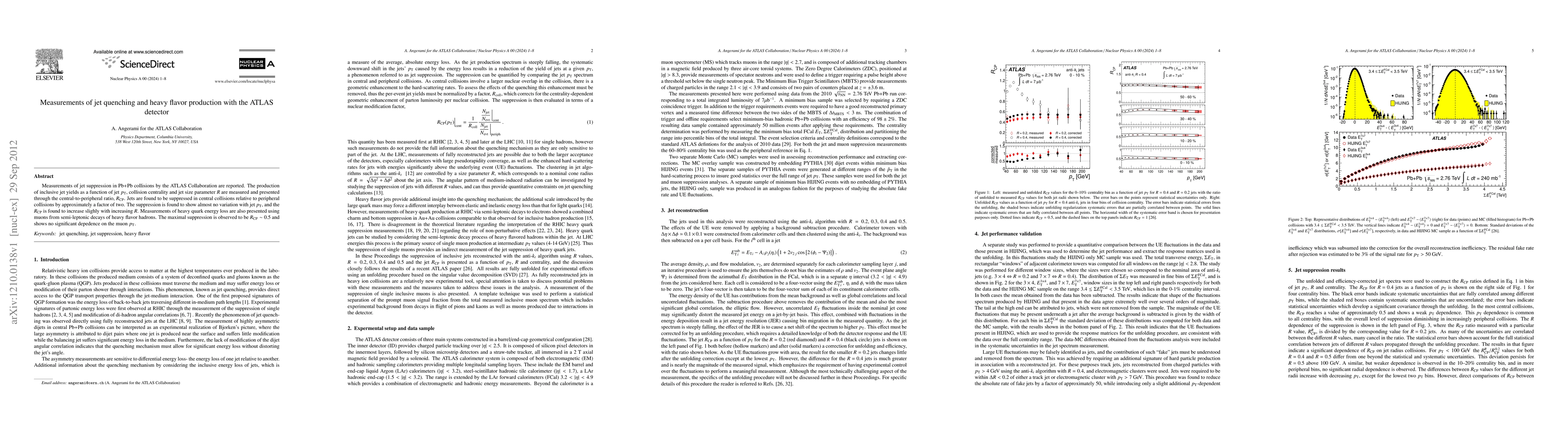 The ATLAS Collaboration reports jet suppression in PbPb collisions, finding jets suppressed by approximately a factor of two in central collisions compared to peripheral ones, with minimal jet pt dependence. Heavy quark energy loss measurements via muons from heavy flavor hadron decays show maximal suppression of Rcp ~ 0.5, independent of muon pt.