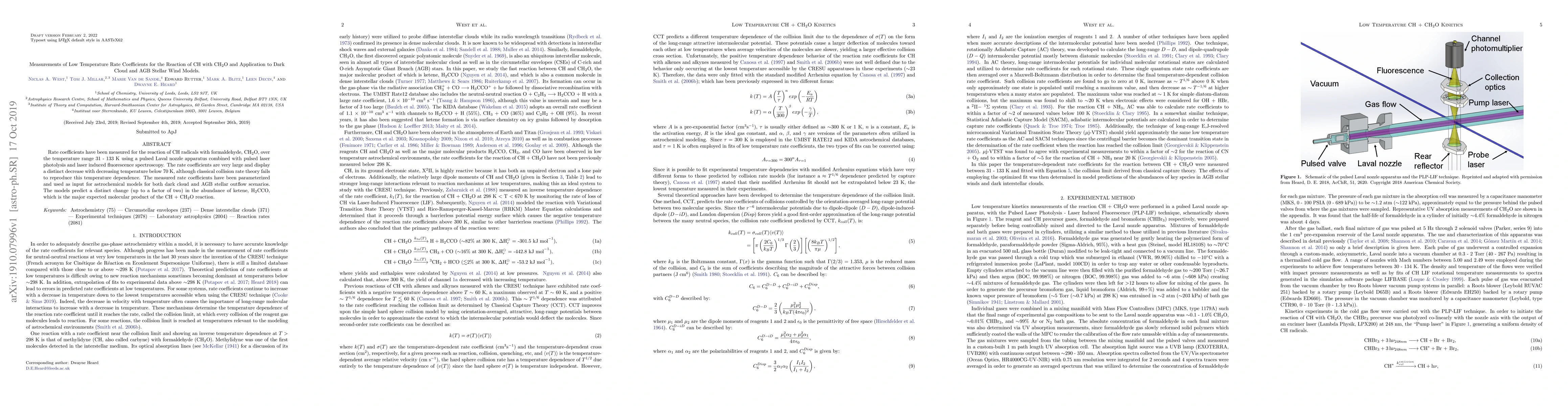 Rate coefficients have been measured for the reaction of CH radicals with formaldehyde, CH$_{2}$O, over the temperature range 31 - 133 K using a pulsed Laval nozzle apparatus combined with pulsed laser photolysis and laser induced fluorescence spectroscopy. The rate coefficients are very large and display a distinct decrease with decreasing temperature below 70 K, although classical collision rate theory fails to reproduce this temperature dependence. The measured rate coefficients have been parameterized and used as input for astrochemical models for both dark cloud and AGB stellar outflow scenarios. The models predict a distinct change (up to a factor of two) in the abundance of ketene, H$_{2}$CCO, which is the major expected molecular product of the CH + CH$_{2}$O reaction.