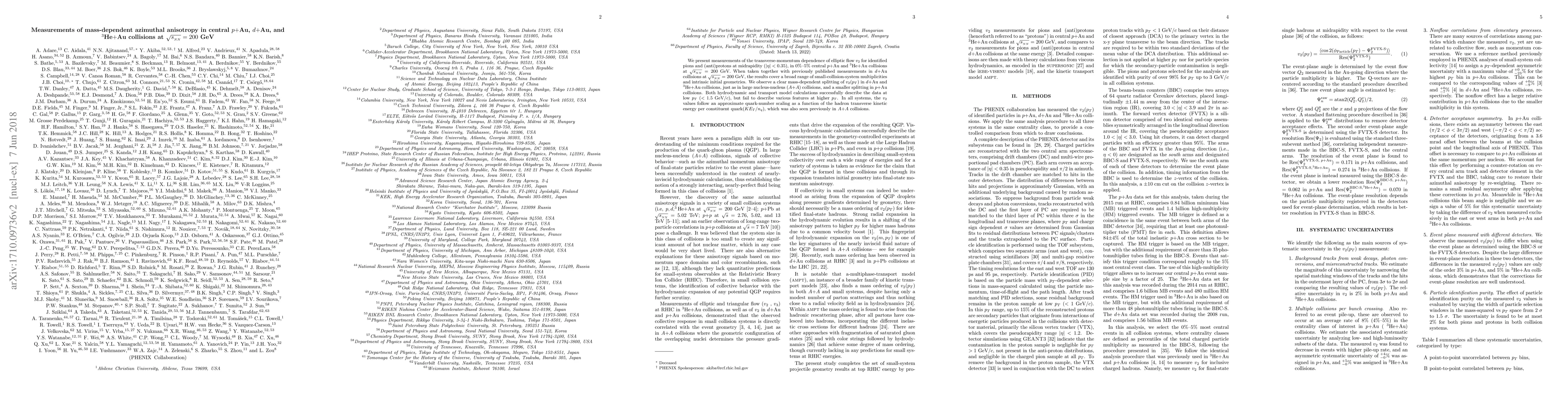 This paper reports measurements of mass-dependent azimuthal anisotropy in various central collisions at $\sqrt{s_{_{NN}}}=200$ GeV, showing a clear mass-dependent splitting of elliptic flow $v_2$ in $d$$+$Au and $^3$He$+$Au collisions similar to $A$$+$$A$ collisions. Hydrodynamic and transport models fit low-$p_T$ data but struggle with higher-$p_T$ features, while $v_2$ values follow quark-number scaling.