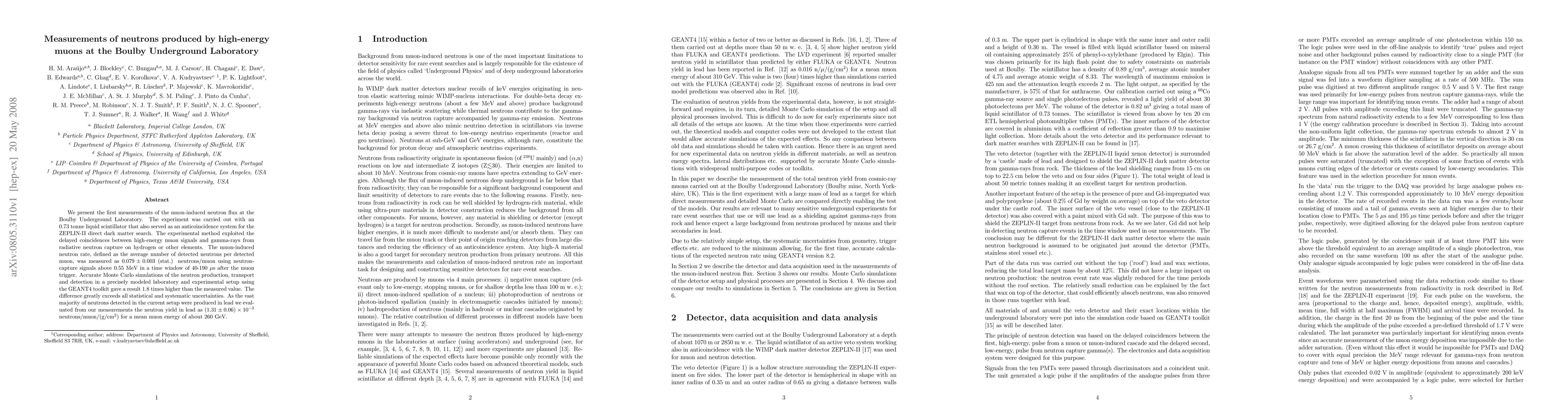The experiment utilized an 0.73 tonne liquid scintillator to measure muon-induced neutrons at the Boulby Underground Laboratory via delayed coincidences between high-energy muon signals and gamma-rays from radiative neutron capture on hydrogen or other elements.