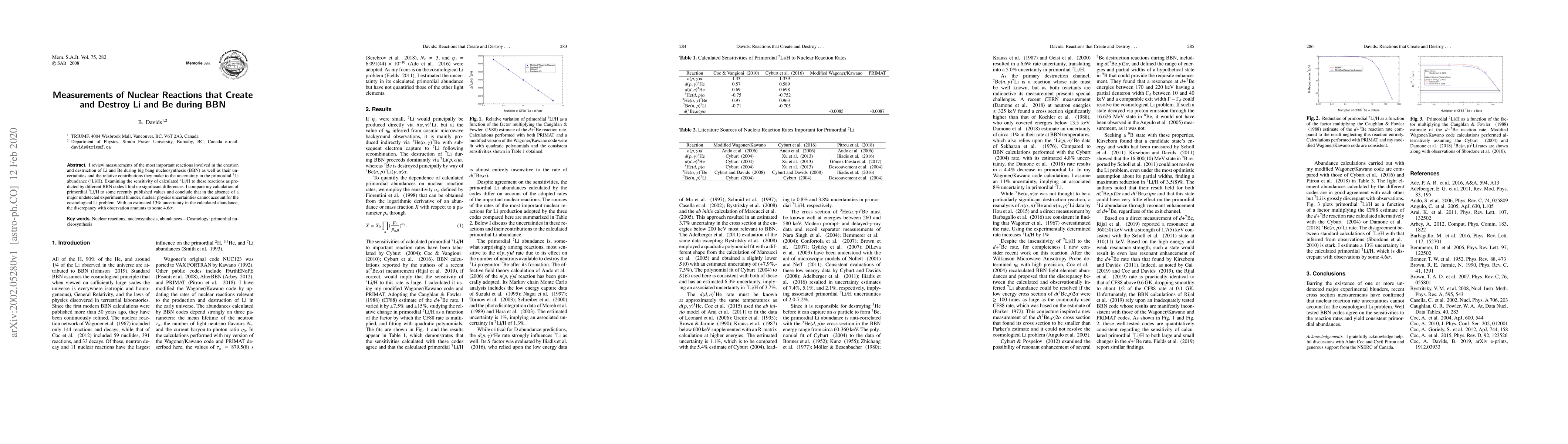 I review measurements of the most important reactions involved in the creation and destruction of Li and Be during big bang nucleosynthesis (BBN) as well as their uncertainties and the relative contributions they make to the uncertainty in the primordial $^7$Li abundance ($^7$Li/H). Examining the sensitivity of calculated $^7$Li/H to these reactions as predicted by different BBN codes I find no significant differences. I compare my calculation of primordial $^7$Li/H to some recently published values and conclude that in the absence of a major undetected experimental blunder, nuclear physics uncertainties cannot account for the cosmological Li problem. With an estimated 13% uncertainty in the calculated abundance, the discrepancy with observation amounts to some $4.6\sigma$.