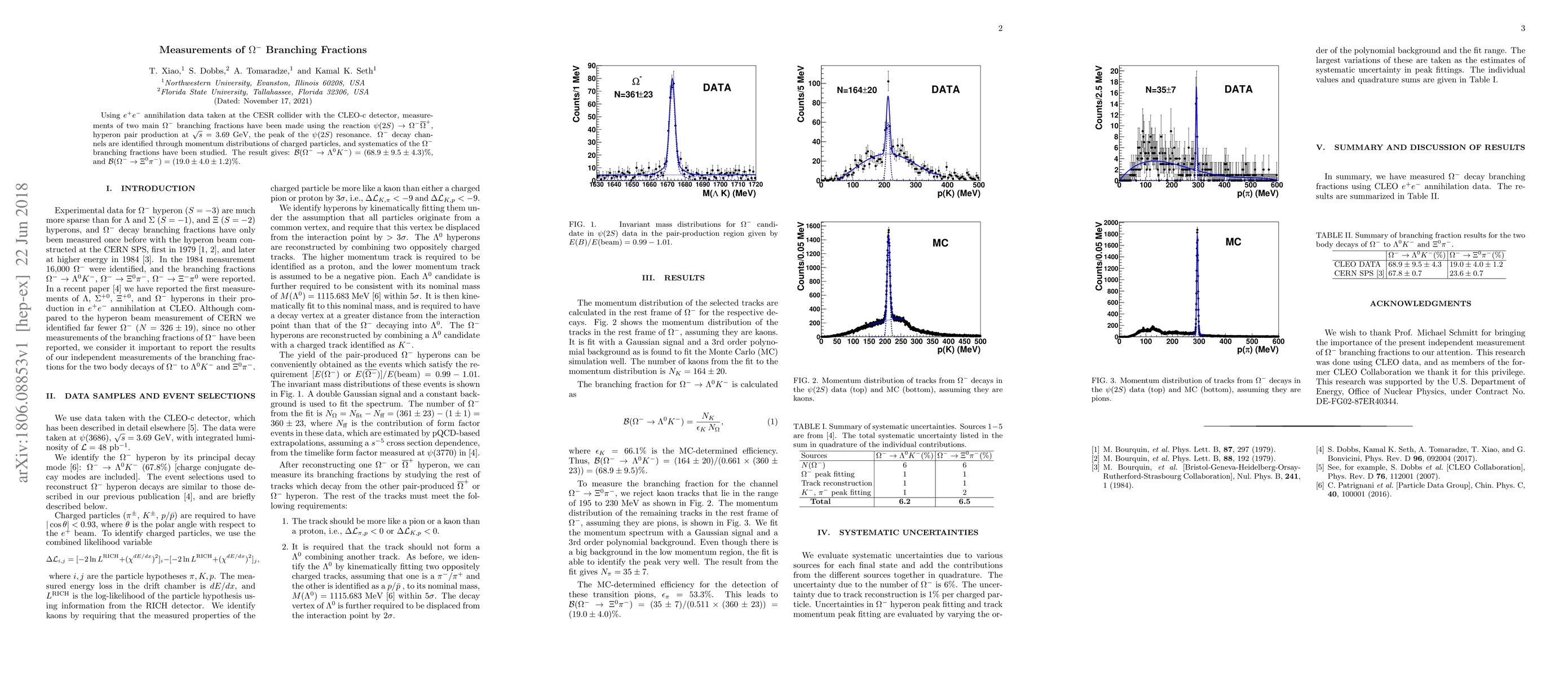 This research provides crucial data on $\Omega^-$ hyperon decay channels, which are sparsely documented compared to $\Lambda$ and $\Xi$ hyperons. The findings contribute to a better understanding of the properties and behaviors of these exotic particles, which is essential for testing theoretical models in particle physics.
