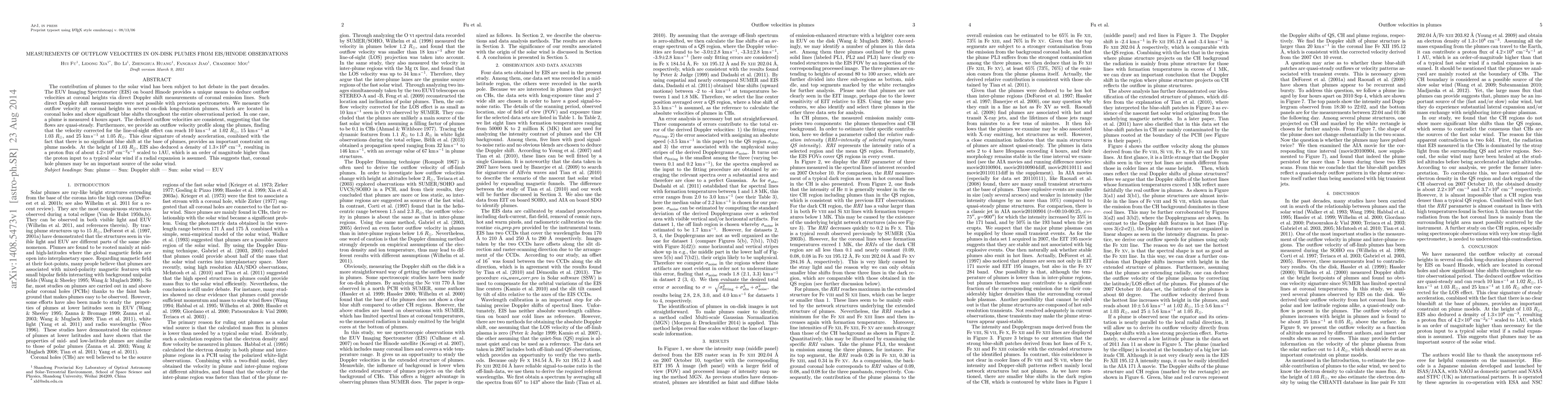 This study uses EIS on Hinode to measure outflow velocities in solar coronal plumes, finding quasi-steady flows with significant blue shifts and velocities reaching up to 25 km s$^{-1}$ at 1.05 $R_{\odot}$. The results suggest plumes may significantly contribute to the solar wind, with a proton flux an order of magnitude higher than typical solar wind inputs.
