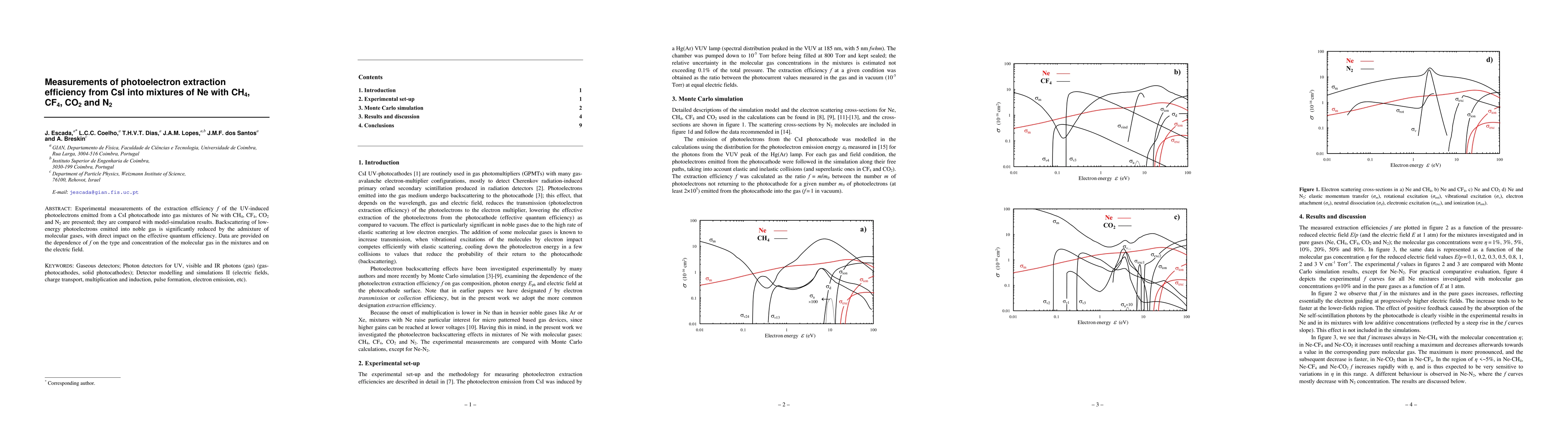 This paper presents experimental measurements of photoelectron extraction efficiency from CsI into gas mixtures of Ne with CH4, CF4, CO2, and N2, showing that molecular gases significantly reduce backscattering of low-energy photoelectrons, impacting quantum efficiency. The study also provides data on the dependence of extraction efficiency on molecular gas type, concentration, and electric field.