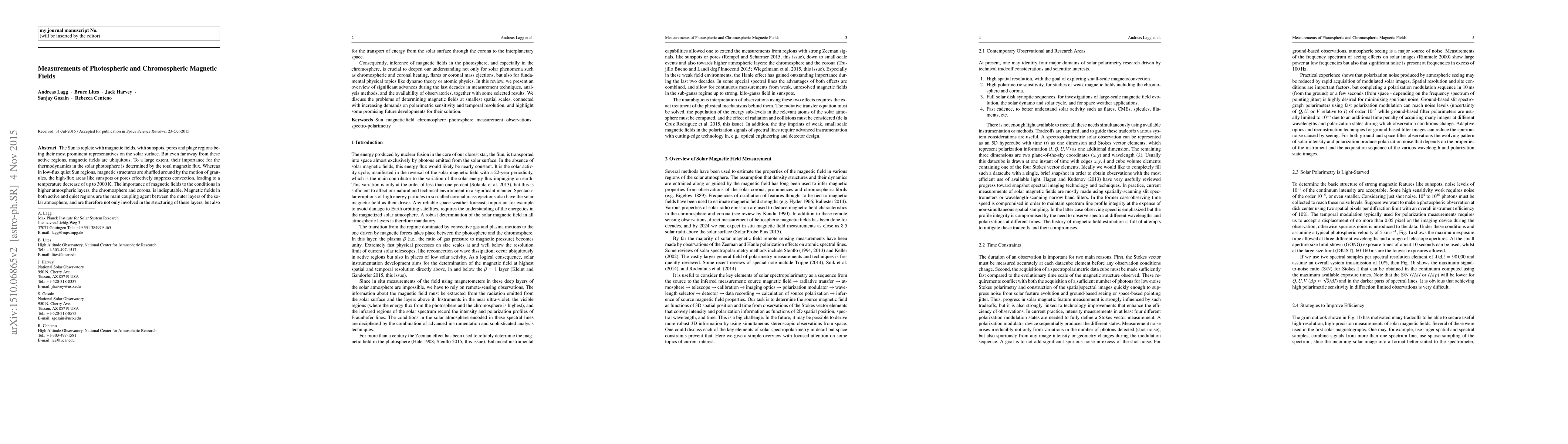 This paper reviews advances in measuring solar photospheric and chromospheric magnetic fields, emphasizing their role in solar thermodynamics and the coupling of solar atmospheric layers. It highlights the challenges in determining magnetic fields at small scales and discusses future developments in measurement techniques.