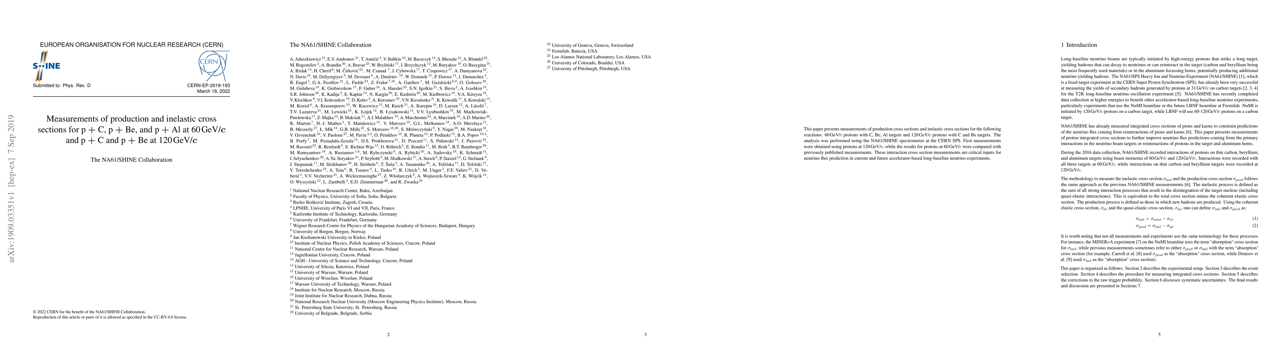 This paper presents measurements of production cross sections and inelastic cross sections for proton collisions with carbon, beryllium, and aluminum targets at 60 GeV/c and 120 GeV/c energies, crucial for neutrino flux predictions.