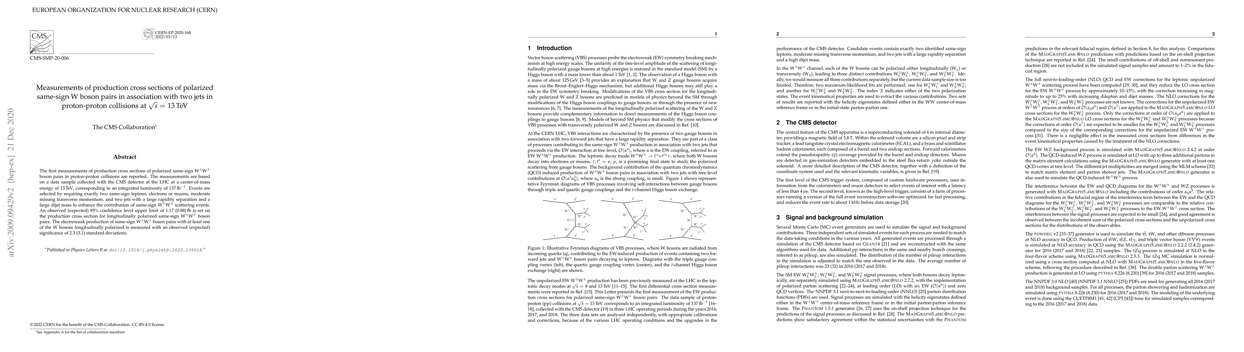 This paper reports the first measurements of production cross sections for polarized same-sign W$^\pm$W$^\pm$ boson pairs in proton-proton collisions at 13 TeV, using data from the CMS detector at the LHC. An observed upper limit of 1.17 fb is set for longitudinally polarized pairs, with a 2.3 standard deviation significance for electroweak production.