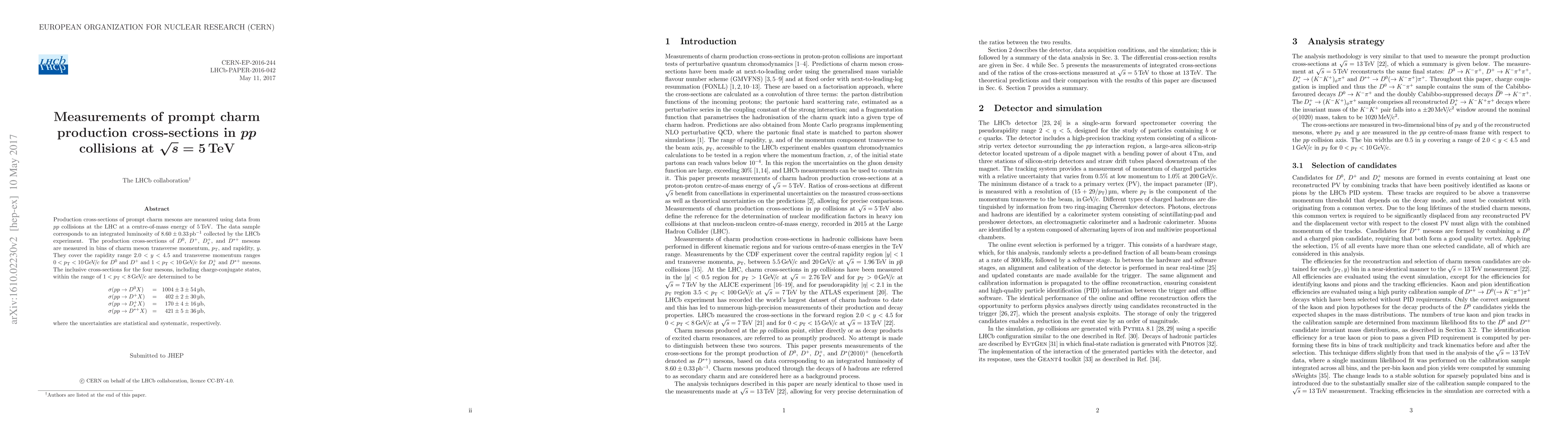 collected by the LHCb experiment. The production cross-sections of $D^0$,