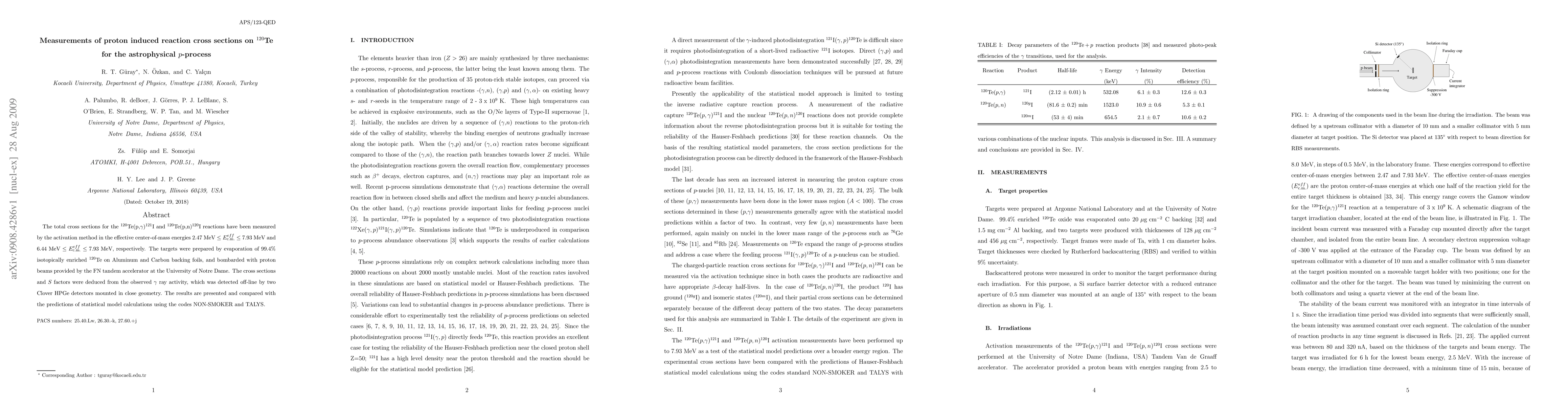 Researchers measured proton-induced reaction cross sections on 120Te to improve astrophysical p-process models, with key findings presented alongside statistical model calculations for comparison.