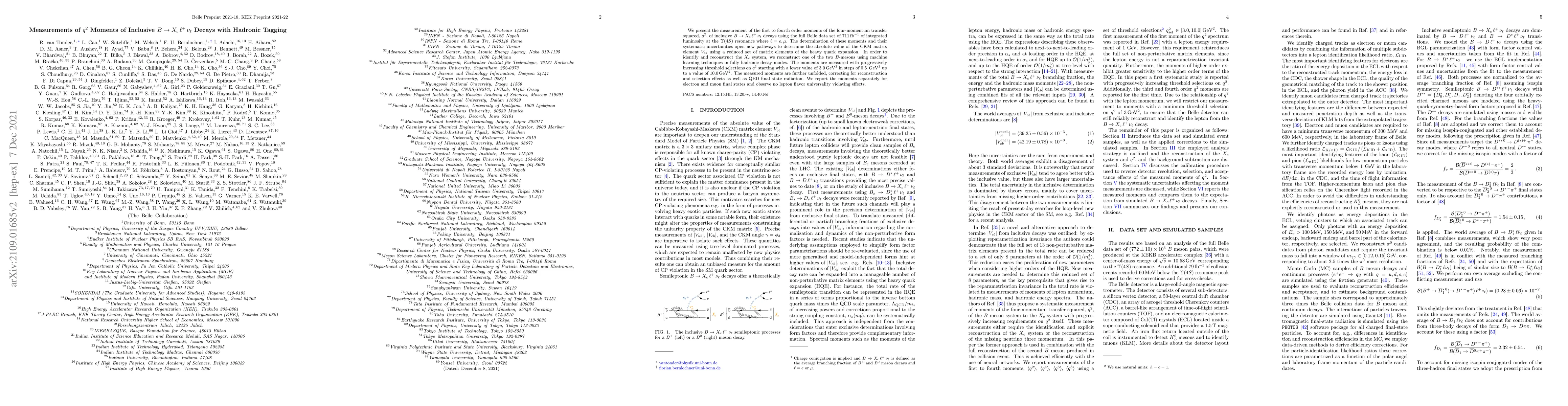 Researchers measured the first to fourth order moments of momentum transfer squared in inclusive B decays using machine learning to reconstruct Xc system, finding no lepton flavor universality effects.