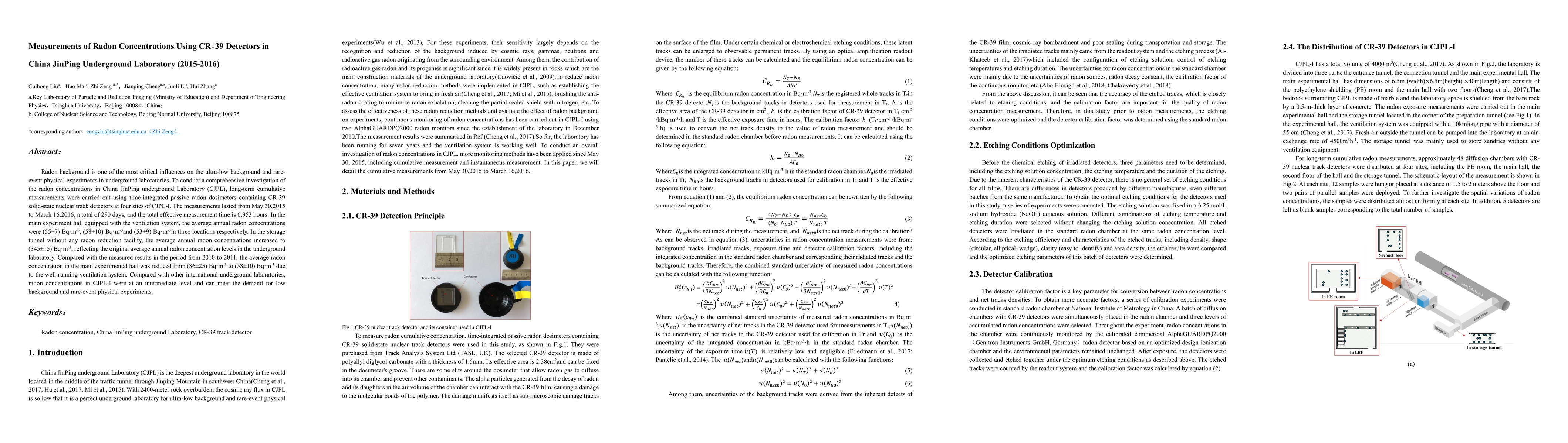 The study measured radon concentrations in China's JinPing Underground Laboratory using CR-39 detectors, finding average annual levels of 55-345 Bq/m^3, with significant reductions in the main experimental hall due to ventilation systems.
