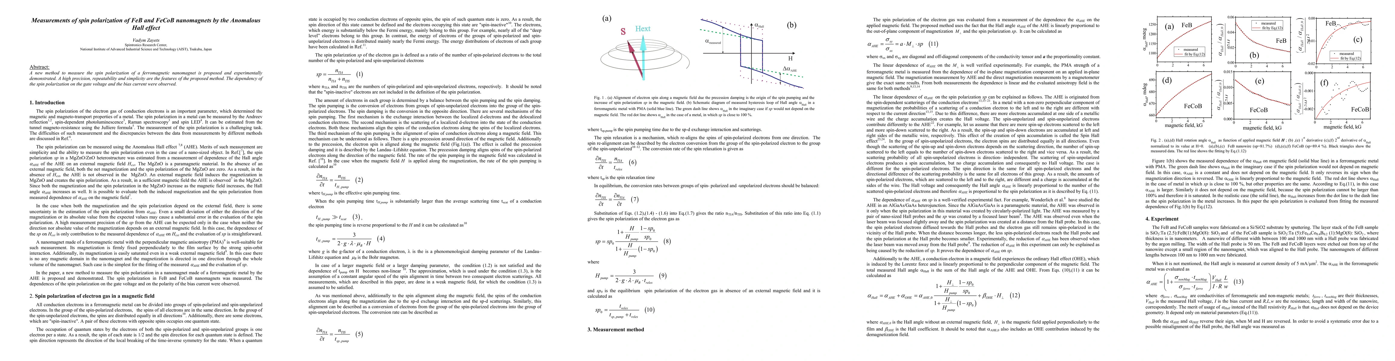 A new method to measure the spin polarization of a ferromagnetic nanomagnet is proposed and experimentally demonstrated. A high precision, repeatability and simplicity are the features of the proposed method. The dependency of the spin polarization on the gate voltage and the bias current were observed.