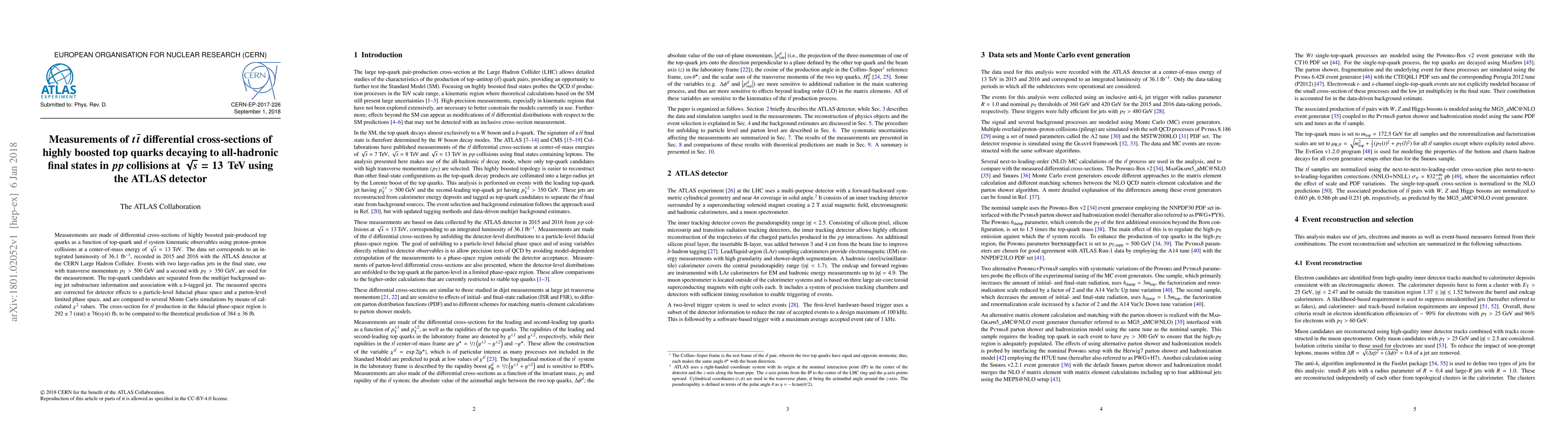 This paper reports measurements of differential cross-sections for highly boosted top quark pairs in all-hadronic final states from $pp$ collisions at $\sqrt{s}=13$ TeV using the ATLAS detector. The analysis focuses on events with large-radius jets, and the measured fiducial cross-section is $292 \pm 7 \, \rm{(stat)} \pm 76 \, \rm{(syst)}$ fb, which is lower than the theoretical prediction of $384 \pm 36$ fb.