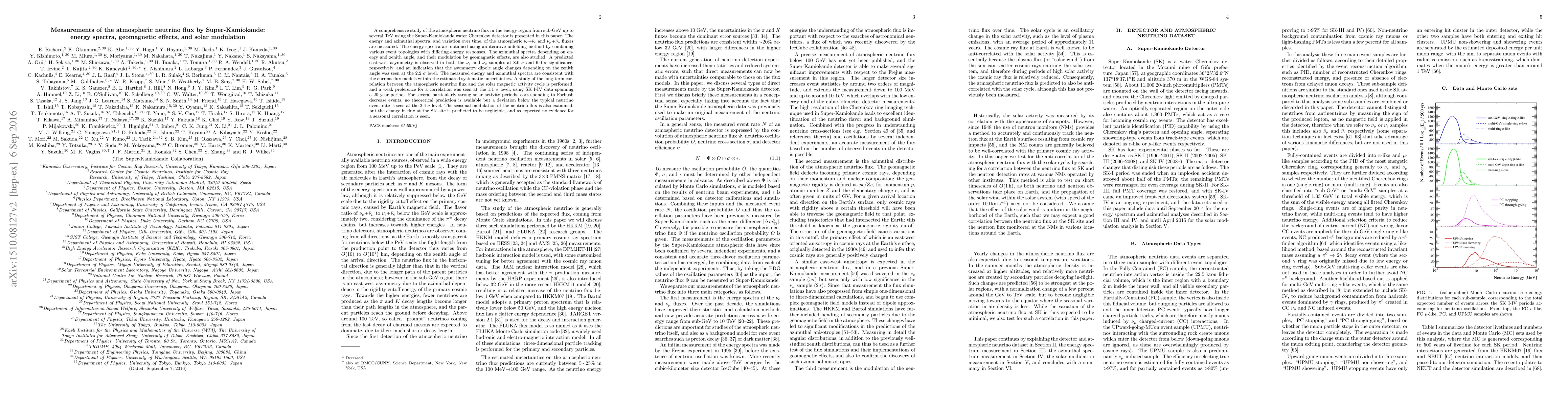 A comprehensive study on the atmospheric neutrino flux in the energy region from sub-GeV up to several TeV using the Super-Kamiokande water Cherenkov detector is presented in this paper. The energy and azimuthal spectra of the atmospheric ${\nu}_e+{\bar{\nu}}_e$ and ${\nu}_{\mu}+{\bar{\nu}}_{\mu}$ fluxes are measured. The energy spectra are obtained using an iterative unfolding method by combining various event topologies with differing energy responses. The azimuthal spectra depending on energy and zenith angle, and their modulation by geomagnetic effects, are also studied. A predicted east-west asymmetry is observed in both the ${\nu}_e$ and ${\nu}_{\mu}$ samples at 8.0 {\sigma} and 6.0 {\sigma} significance, respectively, and an indication that the asymmetry dipole angle changes depending on the zenith angle was seen at the 2.2 {\sigma} level. The measured energy and azimuthal spectra are consistent with the current flux models within the estimated systematic uncertainties. A study of the long-term correlation between the atmospheric neutrino flux and the solar magnetic activity cycle is also performed, and a weak indication of a correlation was seen at the 1.1 {\sigma} level, using SK I-IV data spanning a 20 year period. For particularly strong solar activity periods known as Forbush decreases, no theoretical prediction is available, but a deviation below the typical neutrino event rate is seen at the 2.4 {\sigma} level.