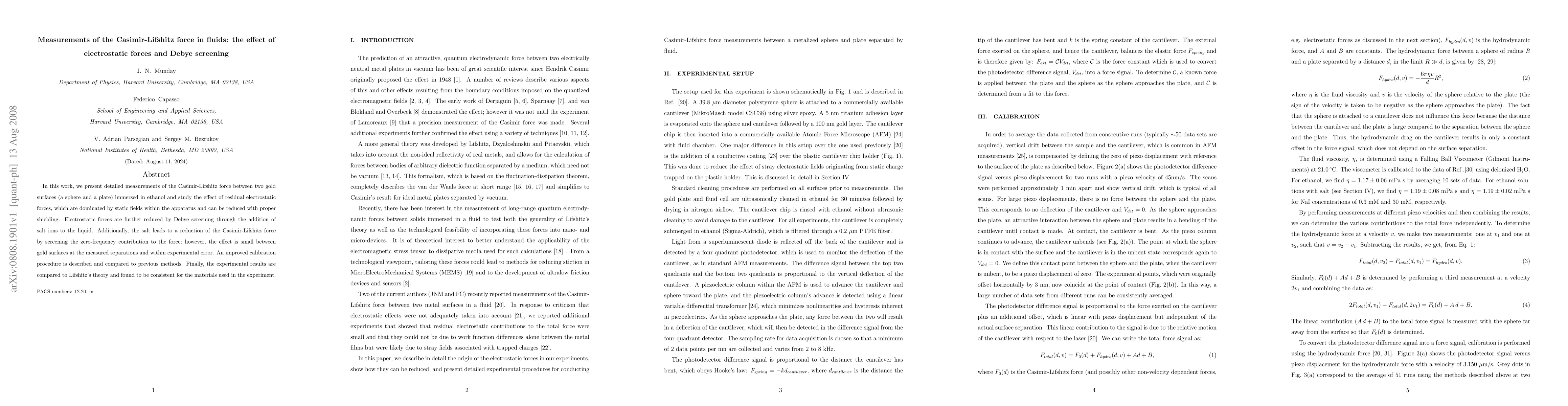 In this work, we present detailed measurements of the Casimir-Lifshitz force between two gold surfaces (a sphere and a plate) immersed in ethanol and study the effect of residual electrostatic forces, which are dominated by static fields within the apparatus and can be reduced with proper shielding. Electrostatic forces are further reduced by Debye screening through the addition of salt ions to the liquid. Additionally, the salt leads to a reduction of the Casimir-Lifshitz force by screening the zero-frequency contribution to the force; however, the effect is small between gold surfaces at the measured separations and within experimental error. An improved calibration procedure is described and compared to previous methods. Finally, the experimental results are compared to Lifshitz's theory and found to be consistent for the materials used in the experiment.